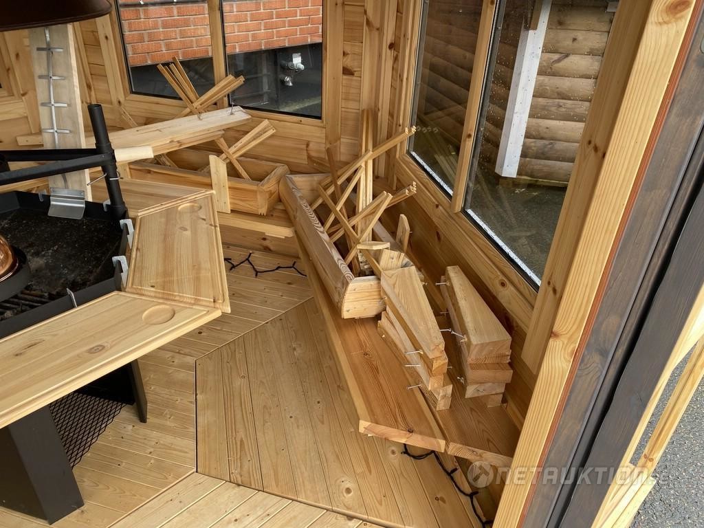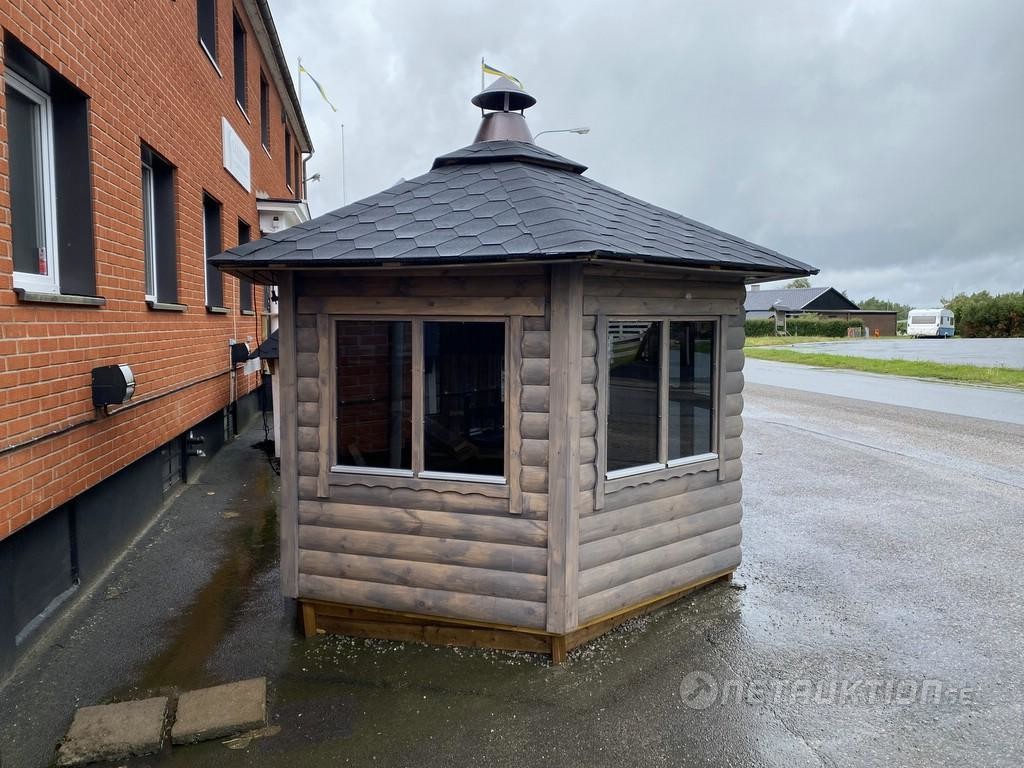 Kåtan är uppbyggd för demovisning samt är provgrillad, men upplevs vara i mycket fint skick. Köparen ombesörjer demontering & transport.