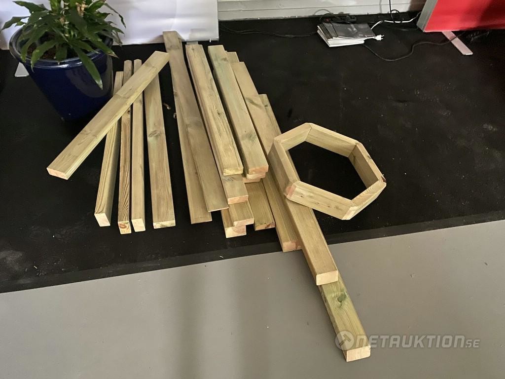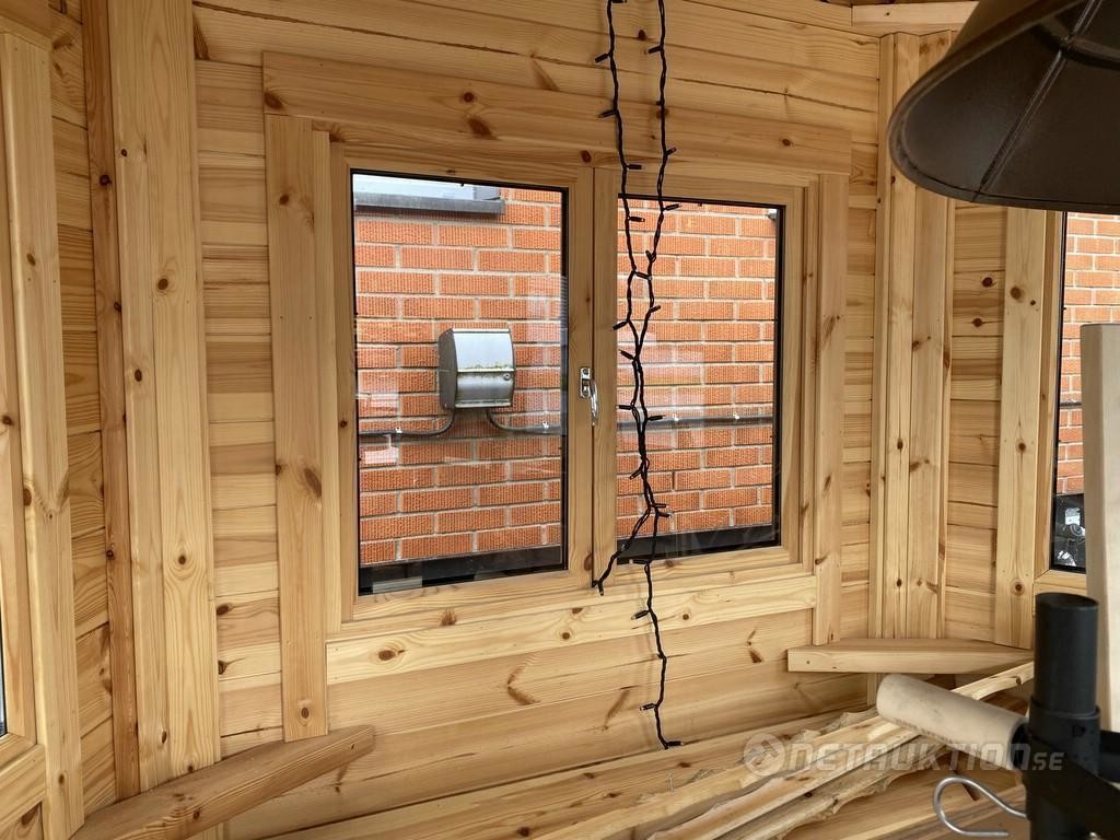 Väggmaterial: 45 x 145 mm Furu