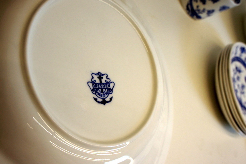 Dekoren Dresden återlanserades 2008 i samband med invigningen av Medelhavsmuseets utställning 'Blåvitt Porslin'. Dresden var tidigare i produktion 1888-1913 samt 1962-1980. Dekoren Dresden är formgiven av Stig Lindberg.