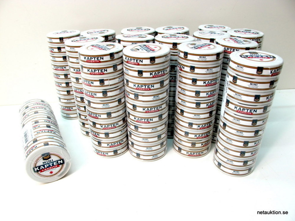16st stockar vit portionssnus Mini Lakrits, Kapten.