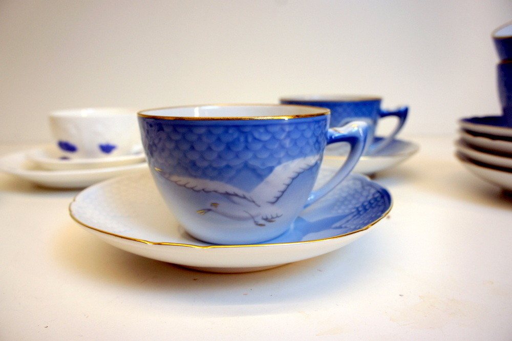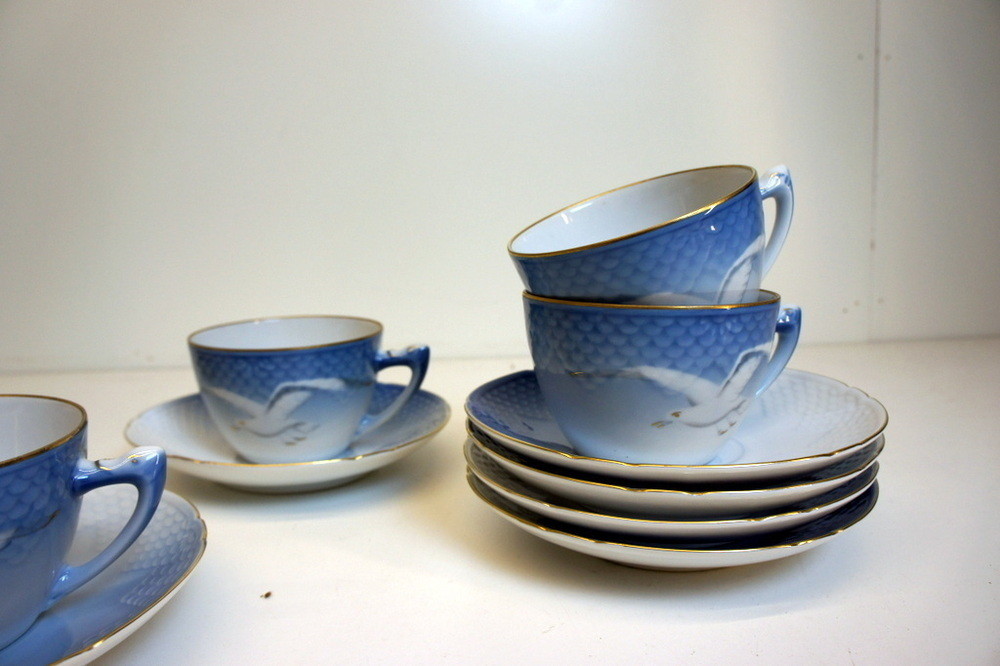 4st koppar och 6st tefat. Måsen, B&G. Mycket fint skick.