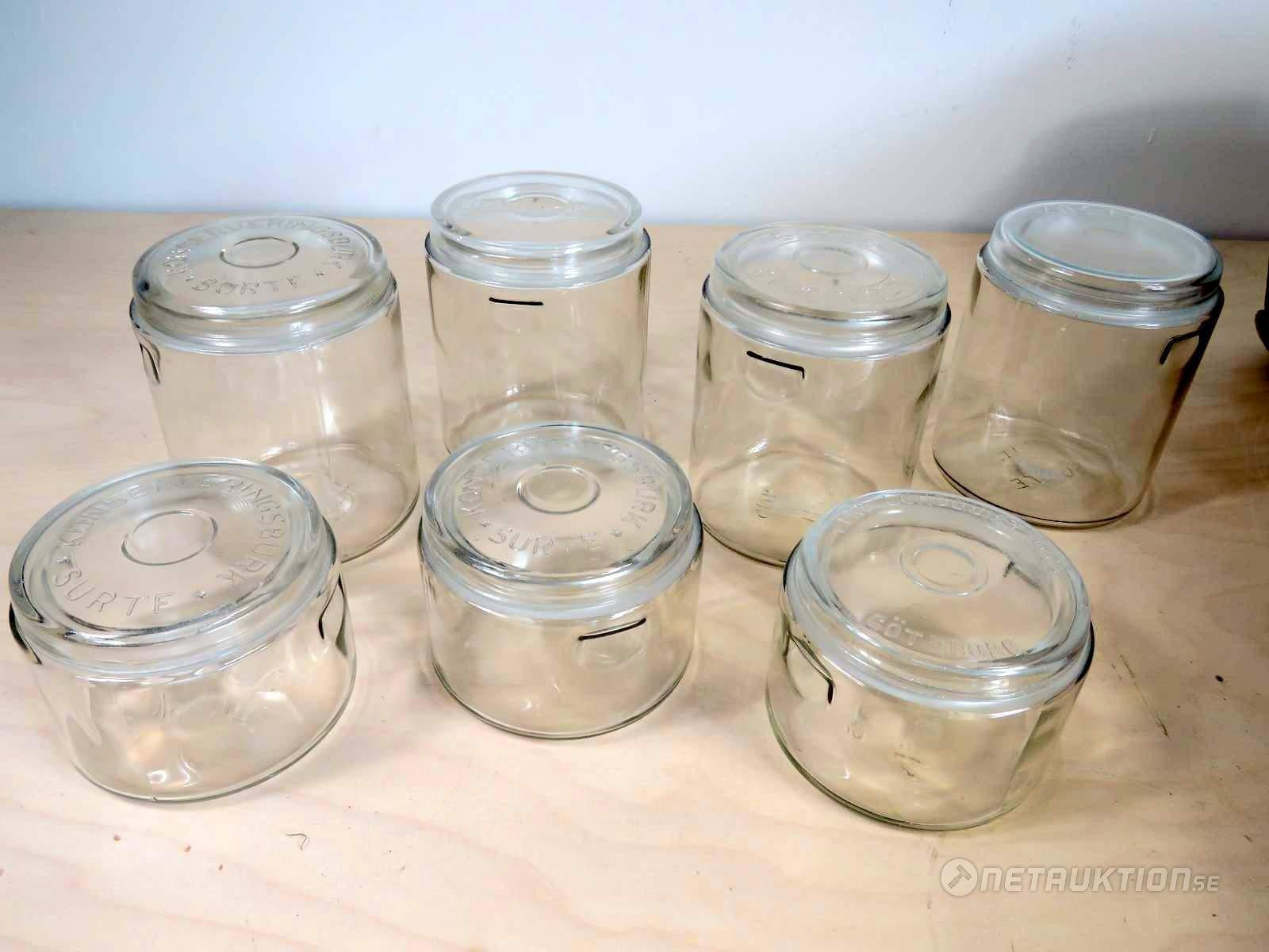 Roliga burkar för förvaring, bl.a från Surte, Kosta, Ferd. Lundqvist Göteborg och Edsons Stockholm.