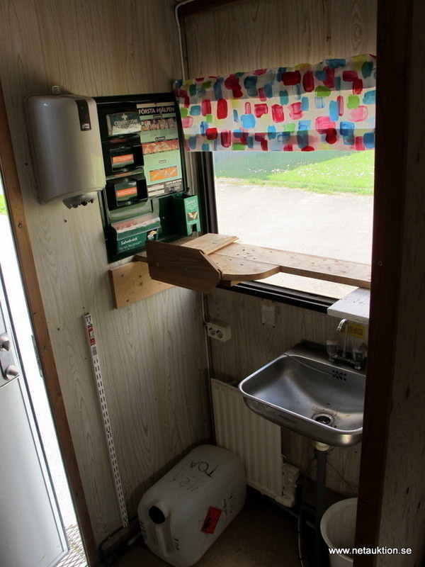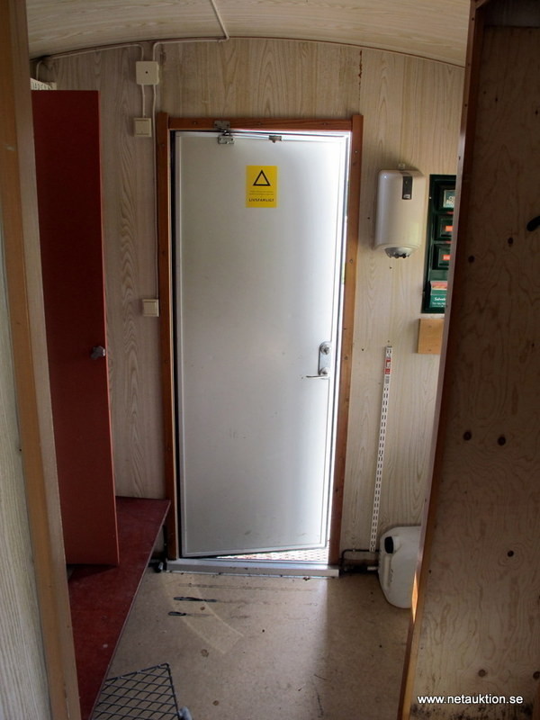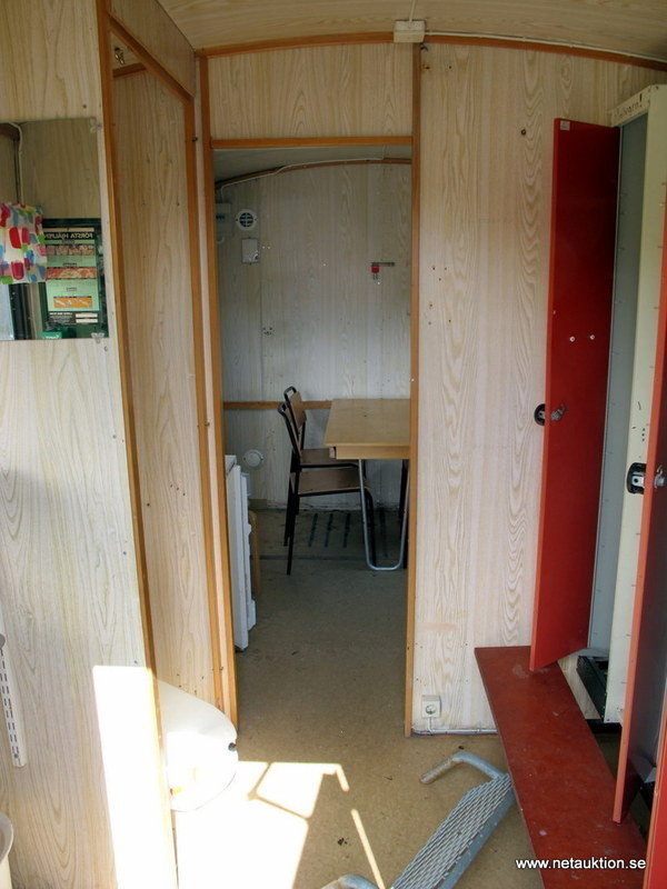 Vagnen är inredd med kylskåp, handfat och omklädningsskåp.