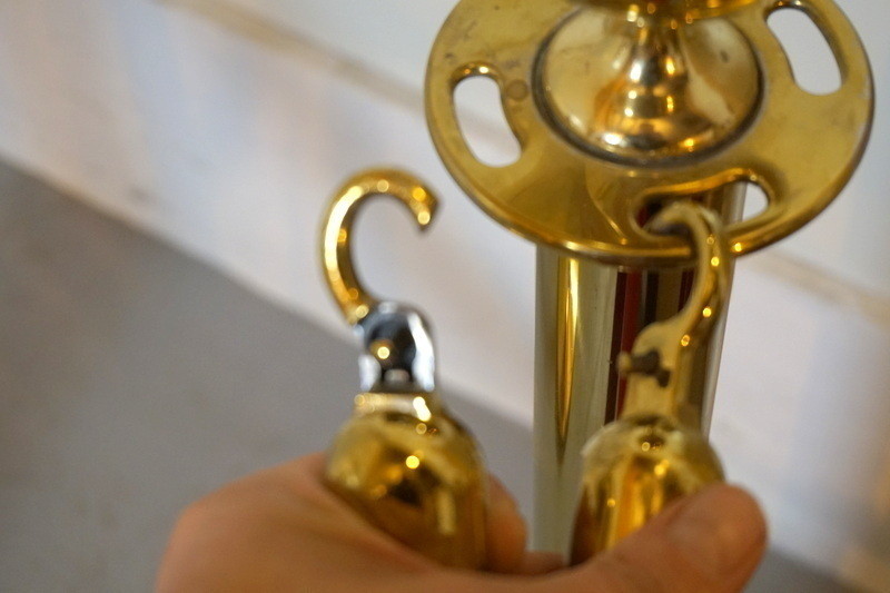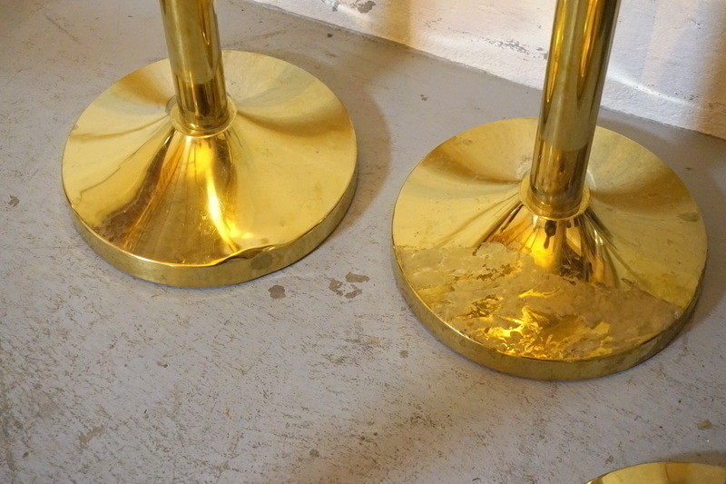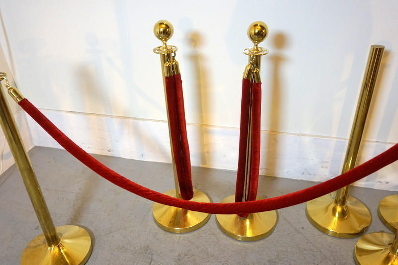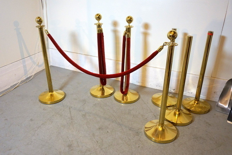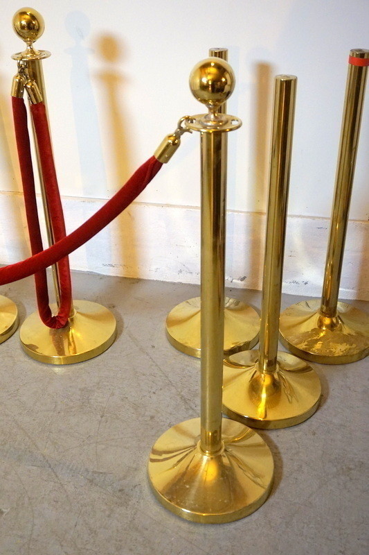 4st avspärrningsstolpar i mässingfärg, med rött band.