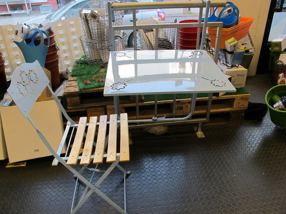 1st vikbart bord som hängs på balkongräcket.