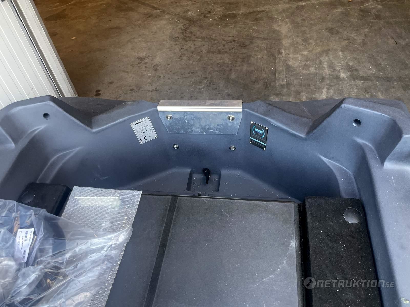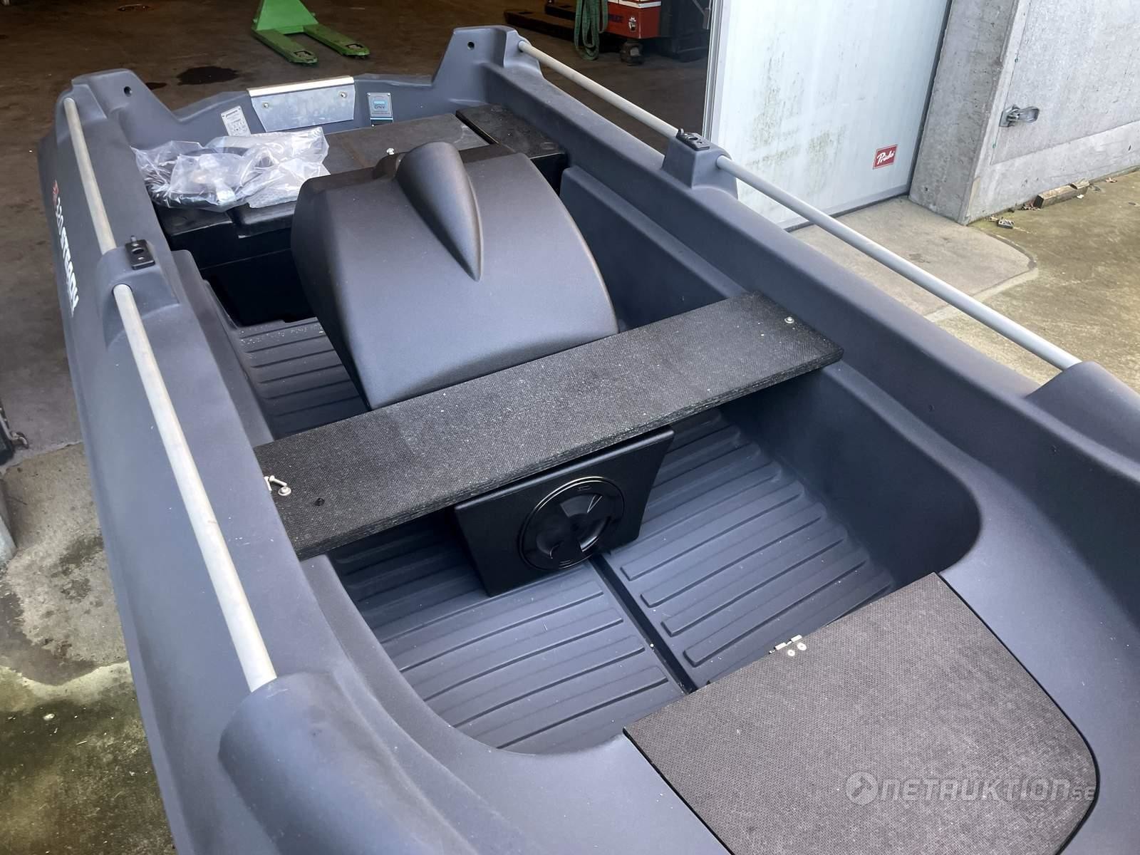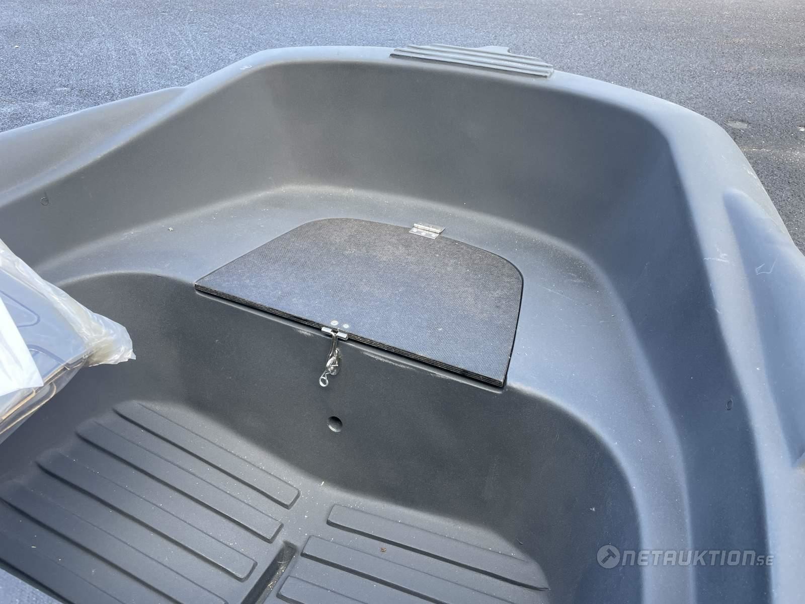 1st plastbåt med dubbla skrov, mörkgrå.
