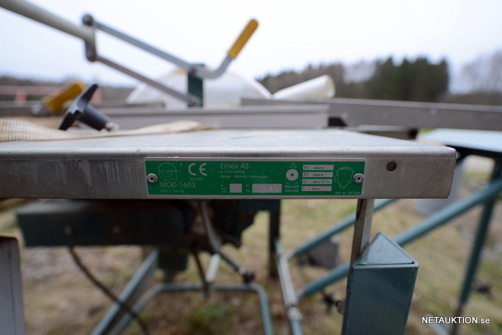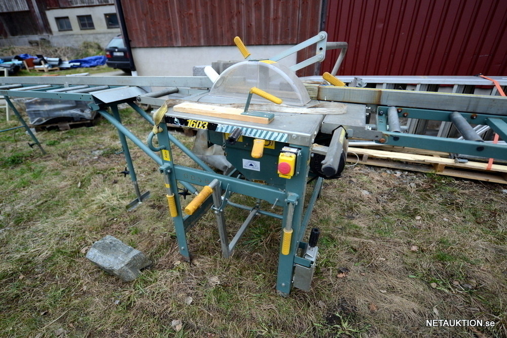 Fin byggsåg Ernex 1603 med rullbanor.