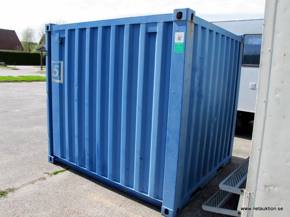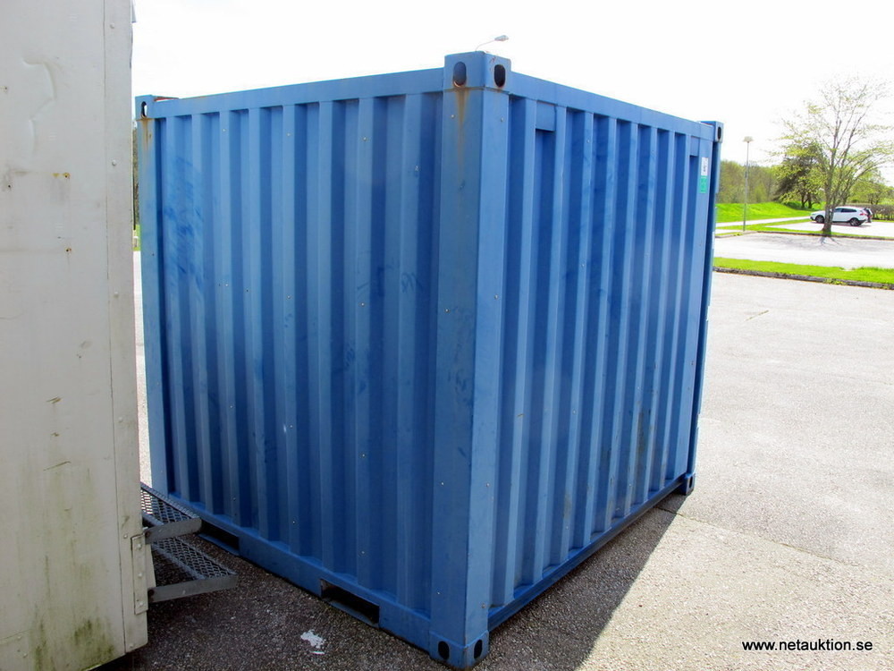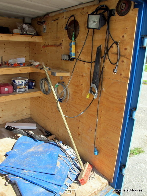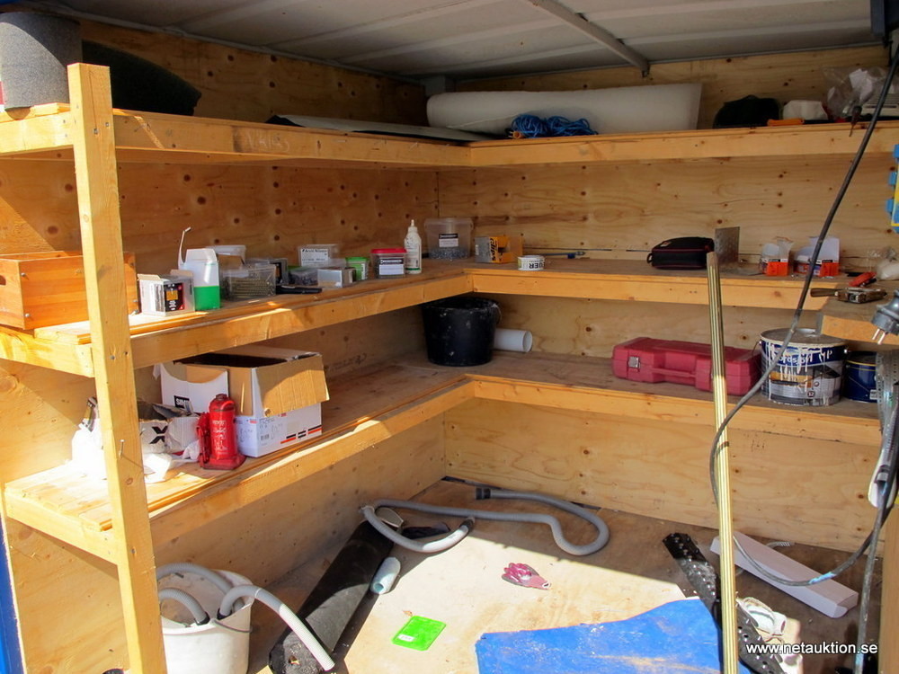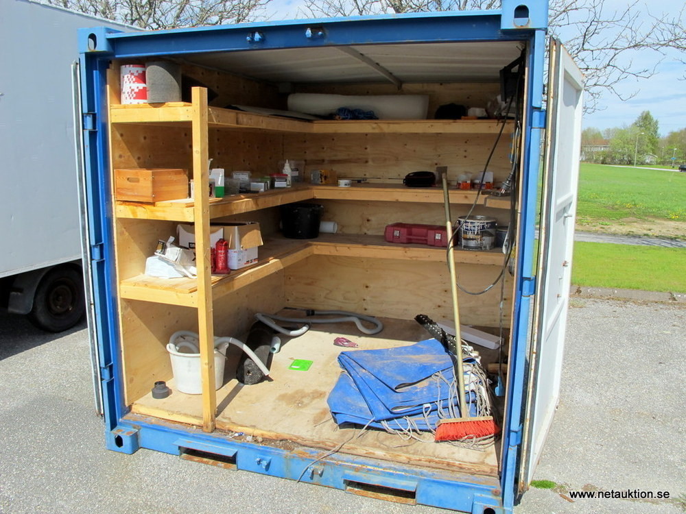 Trevlig 8-fotscontainer inredd med trähyllor.