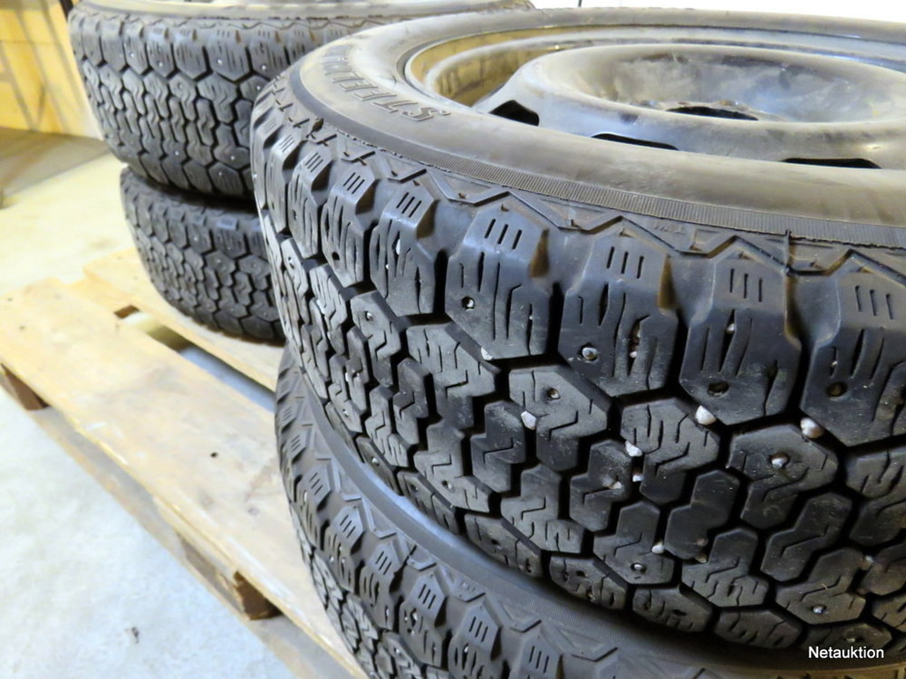 Dubbade vinterdäck på 15" original Volvo plåtfälgar.