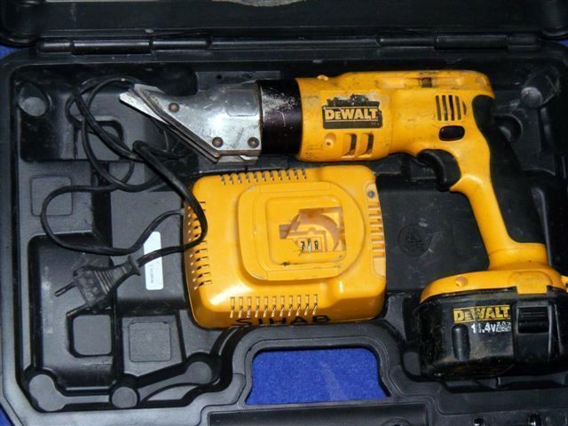 1st DeWalt batteridriven plåtsax, DW941, i väska med laddare och batteri.
