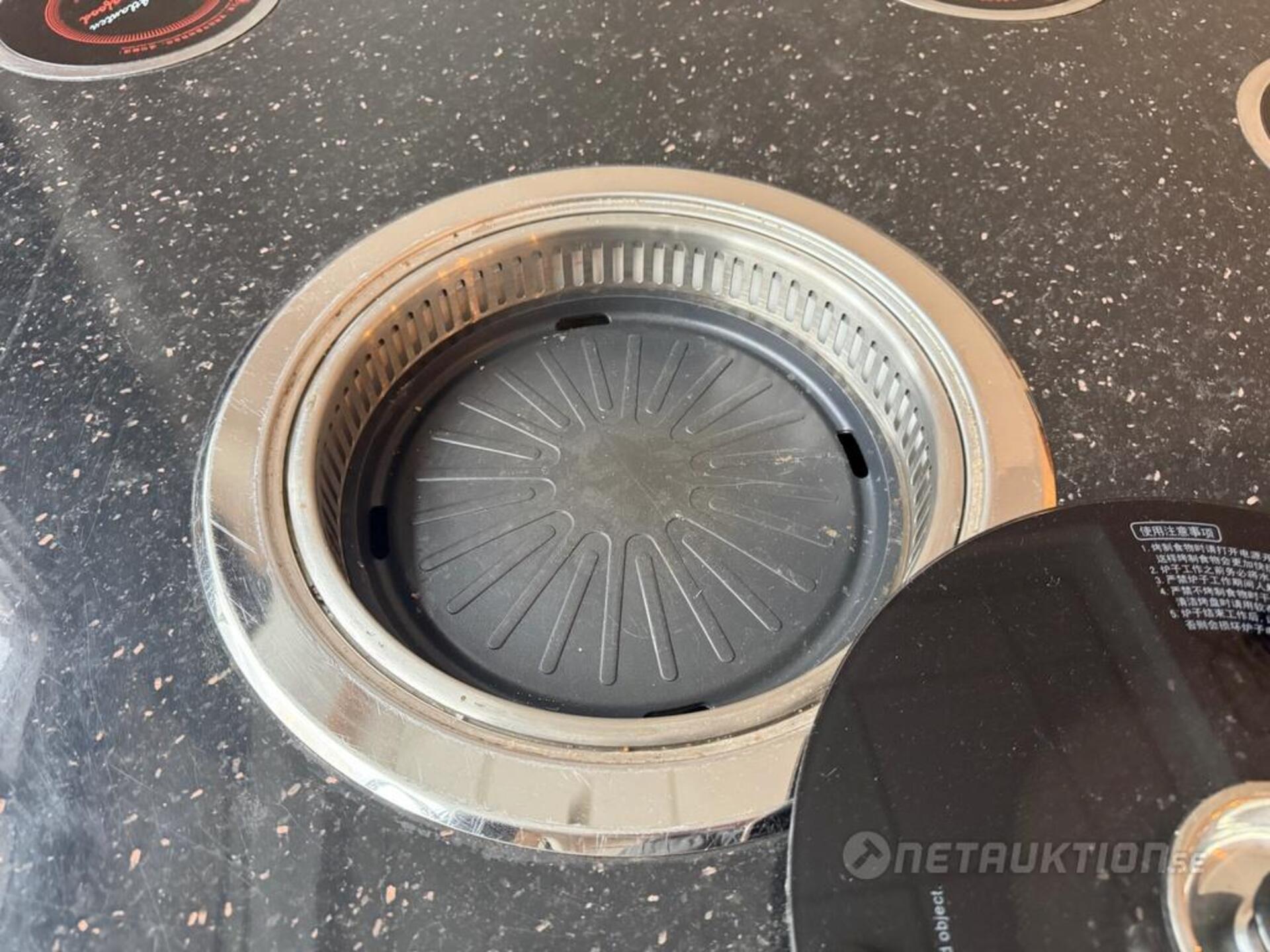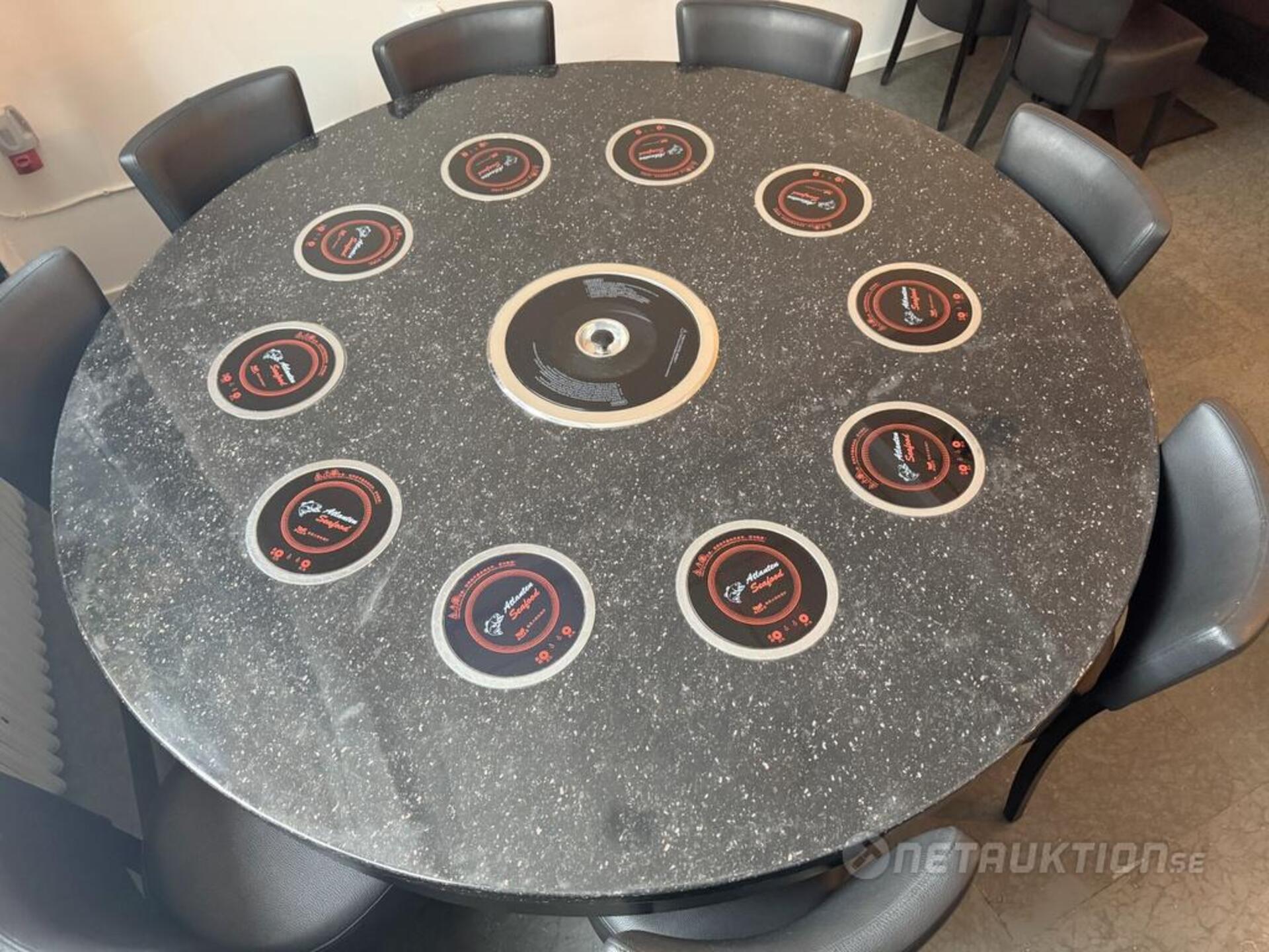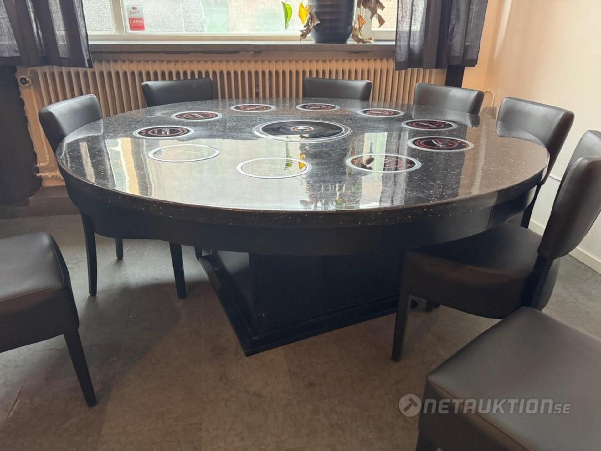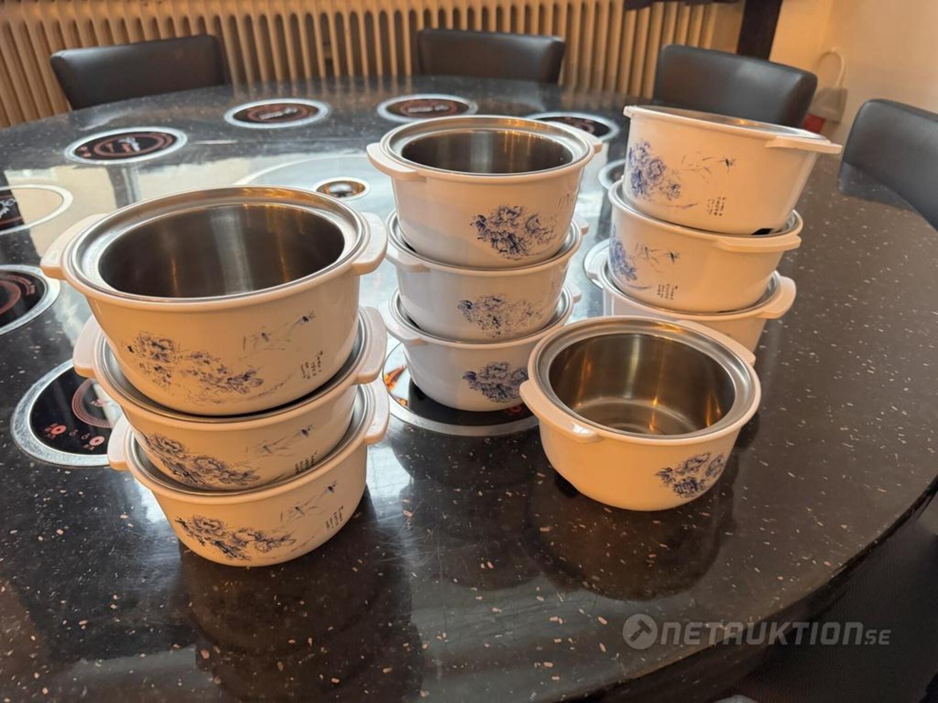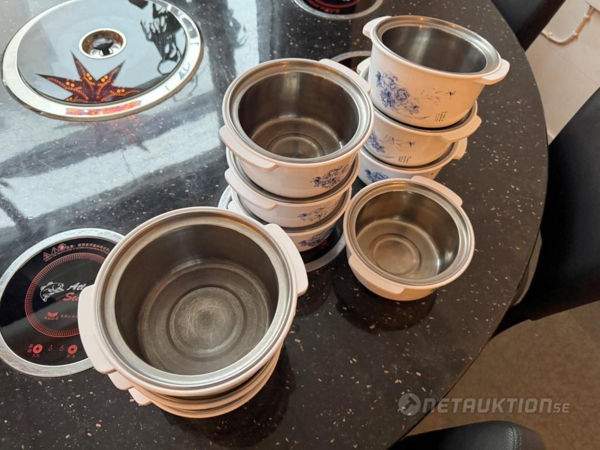1st hotpot bord med 10st elektriska värmeplattor samt elektrisk grill i mitten. Inkl 10st grytor med plastskydd.