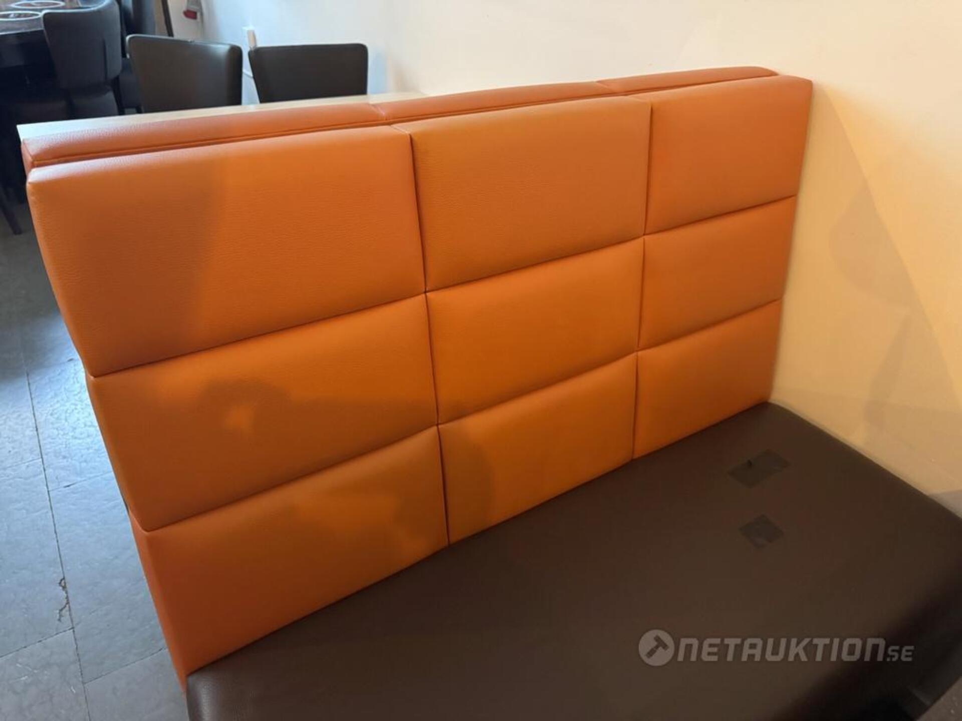 1st soffa med mjuk dyna och rygg och sockel i trä.