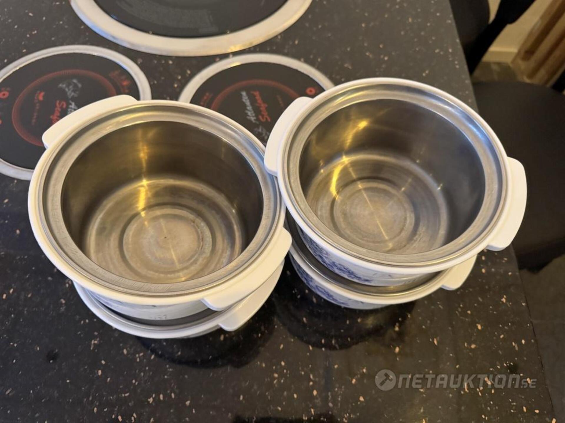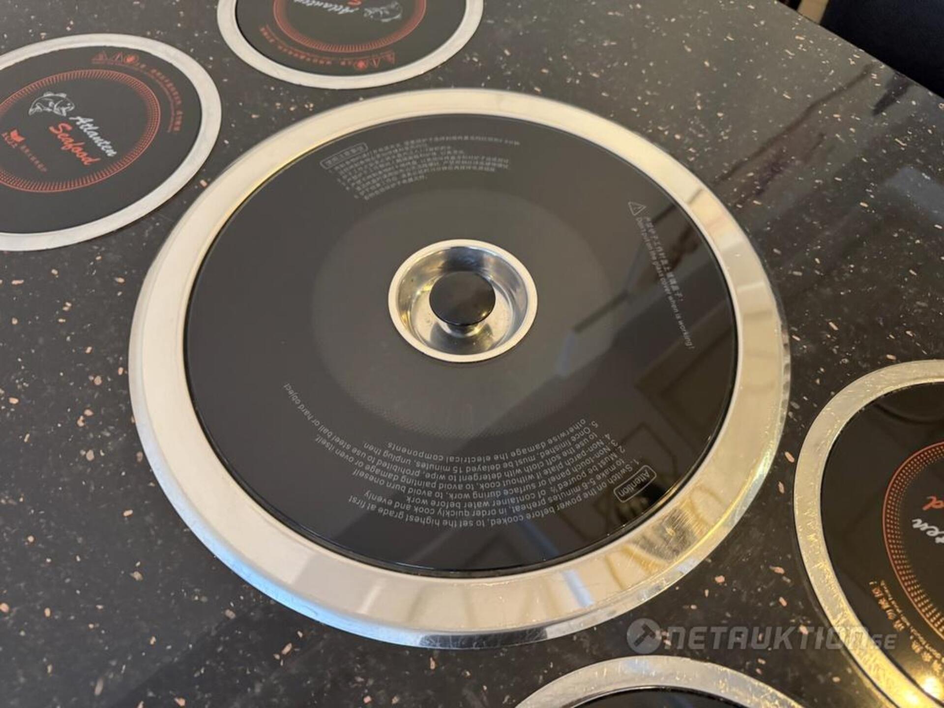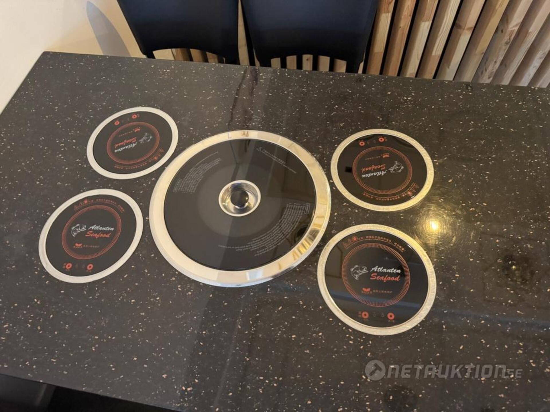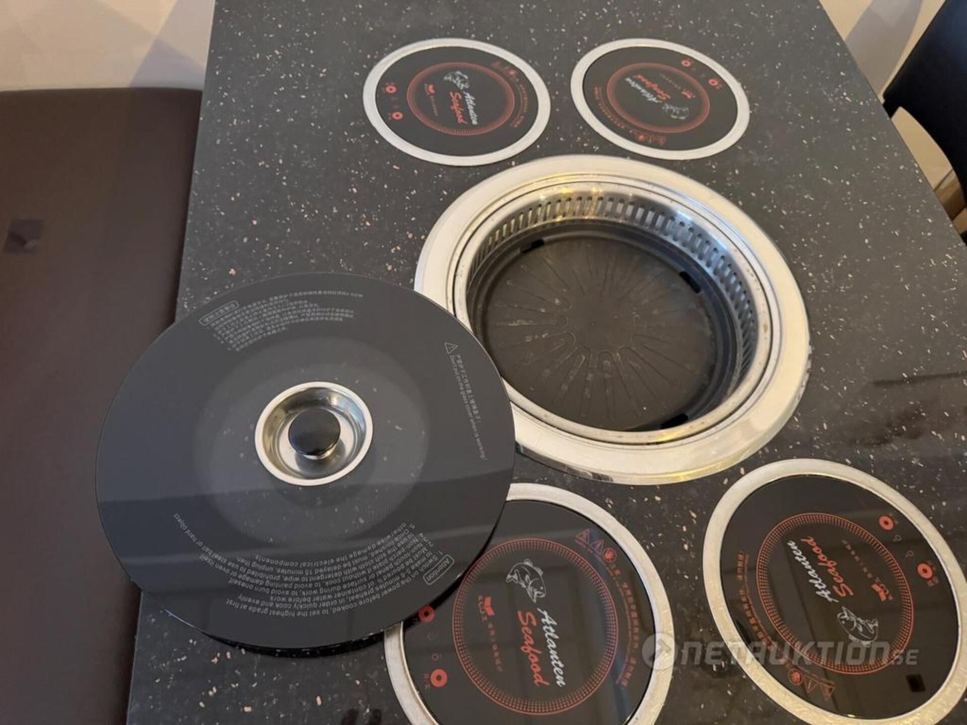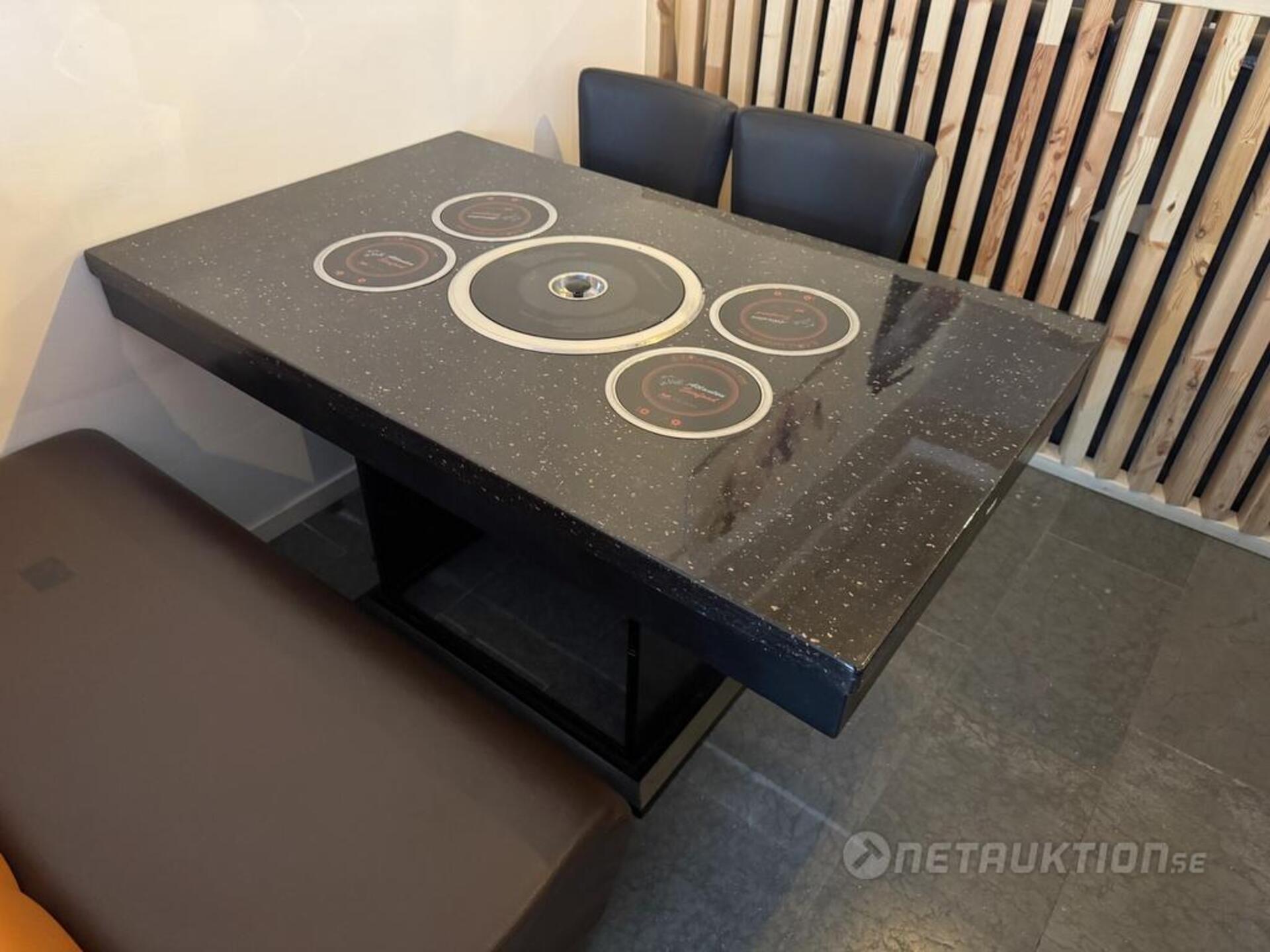 1st hotpot bord med 4st elektriska värmeplattor samt elektrisk grill i mitten. Inkl 4st grytor med plastskydd.