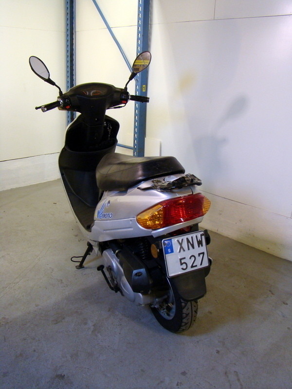Anmärkningar: Trasiga plastdetaljer och skav, se bilder. Mopeden är ej funktionstestad då bränsle/olja saknas samt att batteriet ej är laddat. Oklart om mopeden är komplett och har alla delar.