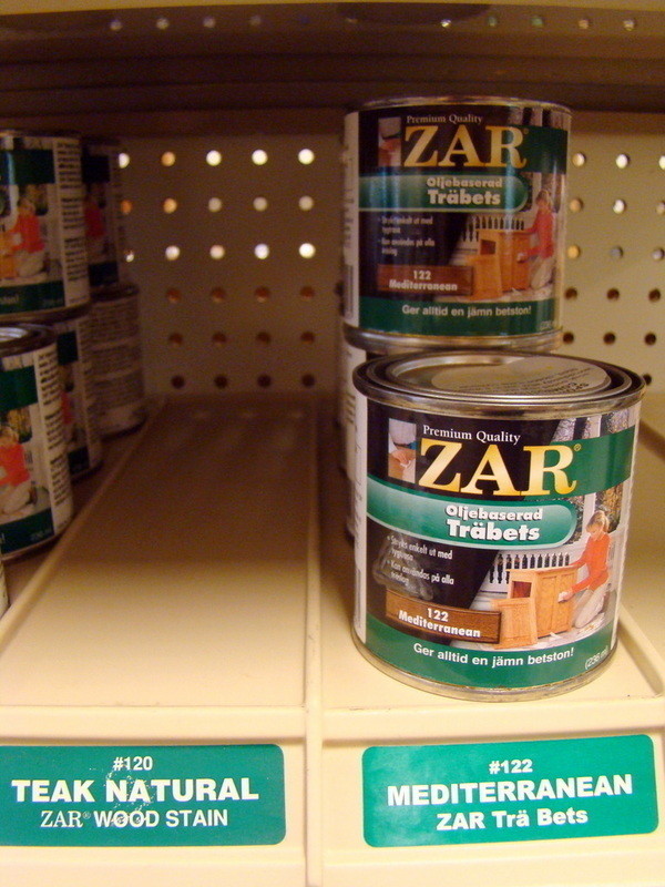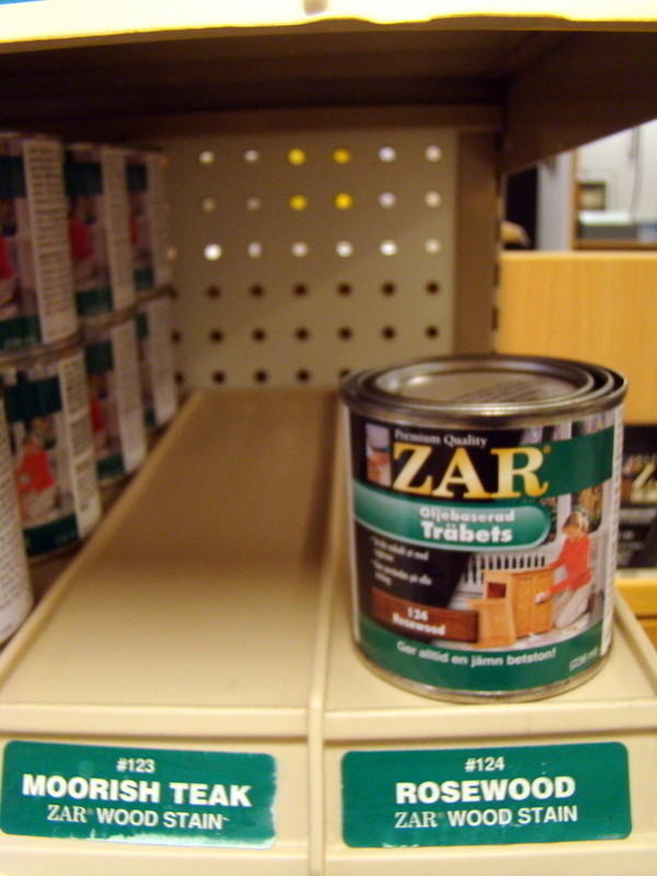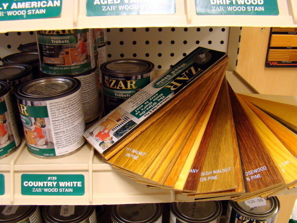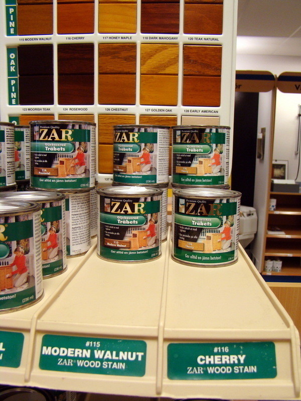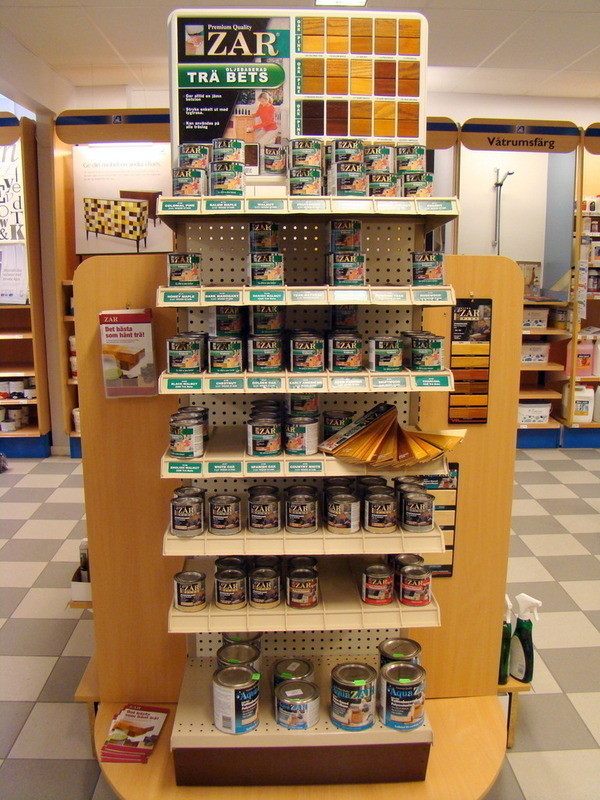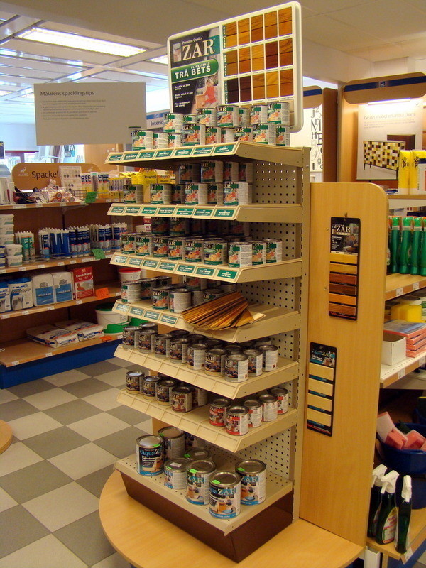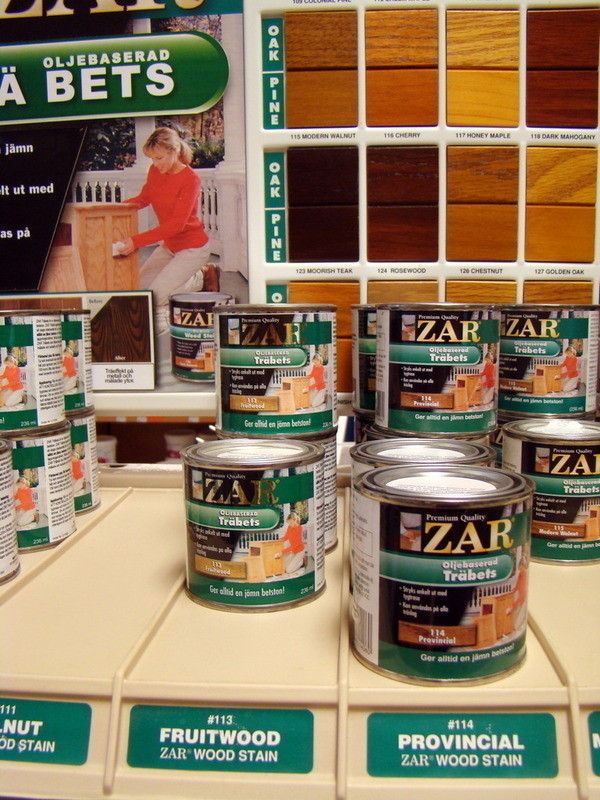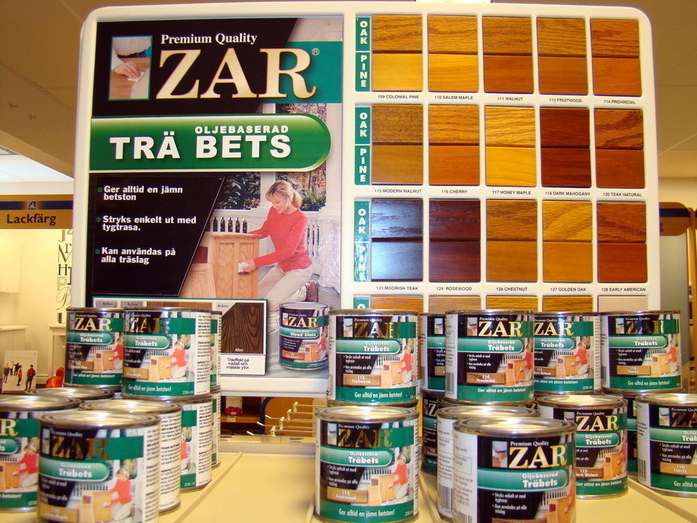 1st Exponeringsställ i metall med diverse trä bets från ZAR.