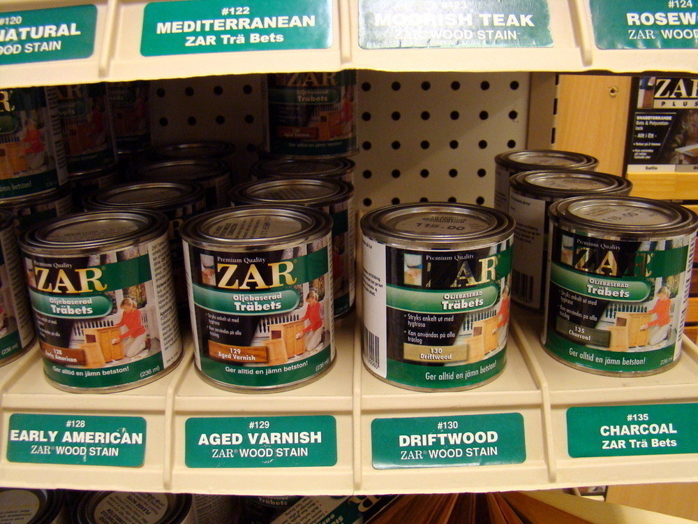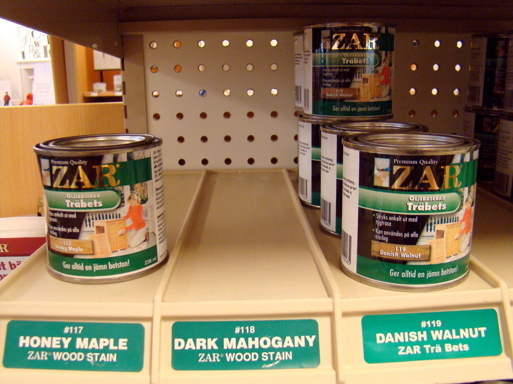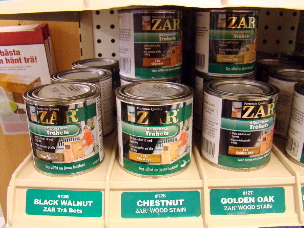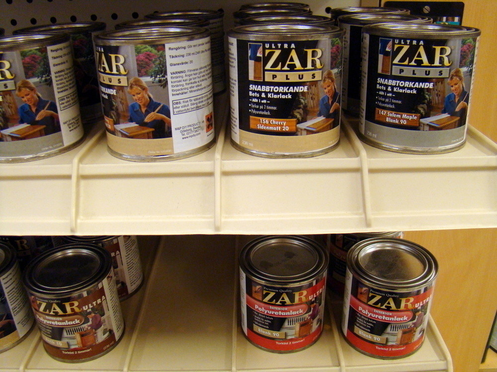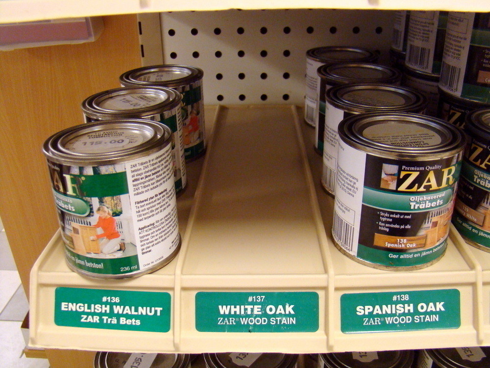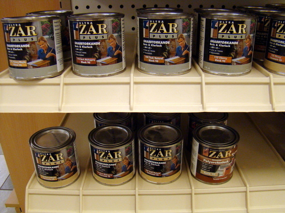 1st Exponeringsställ i metall med diverse trä bets från ZAR.