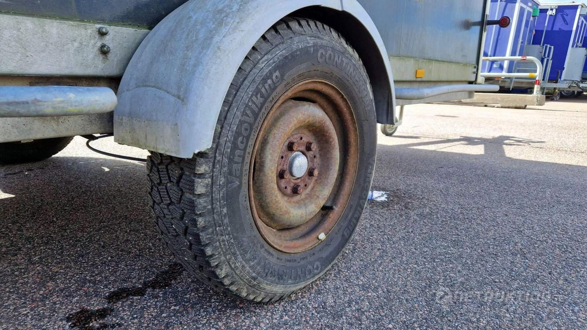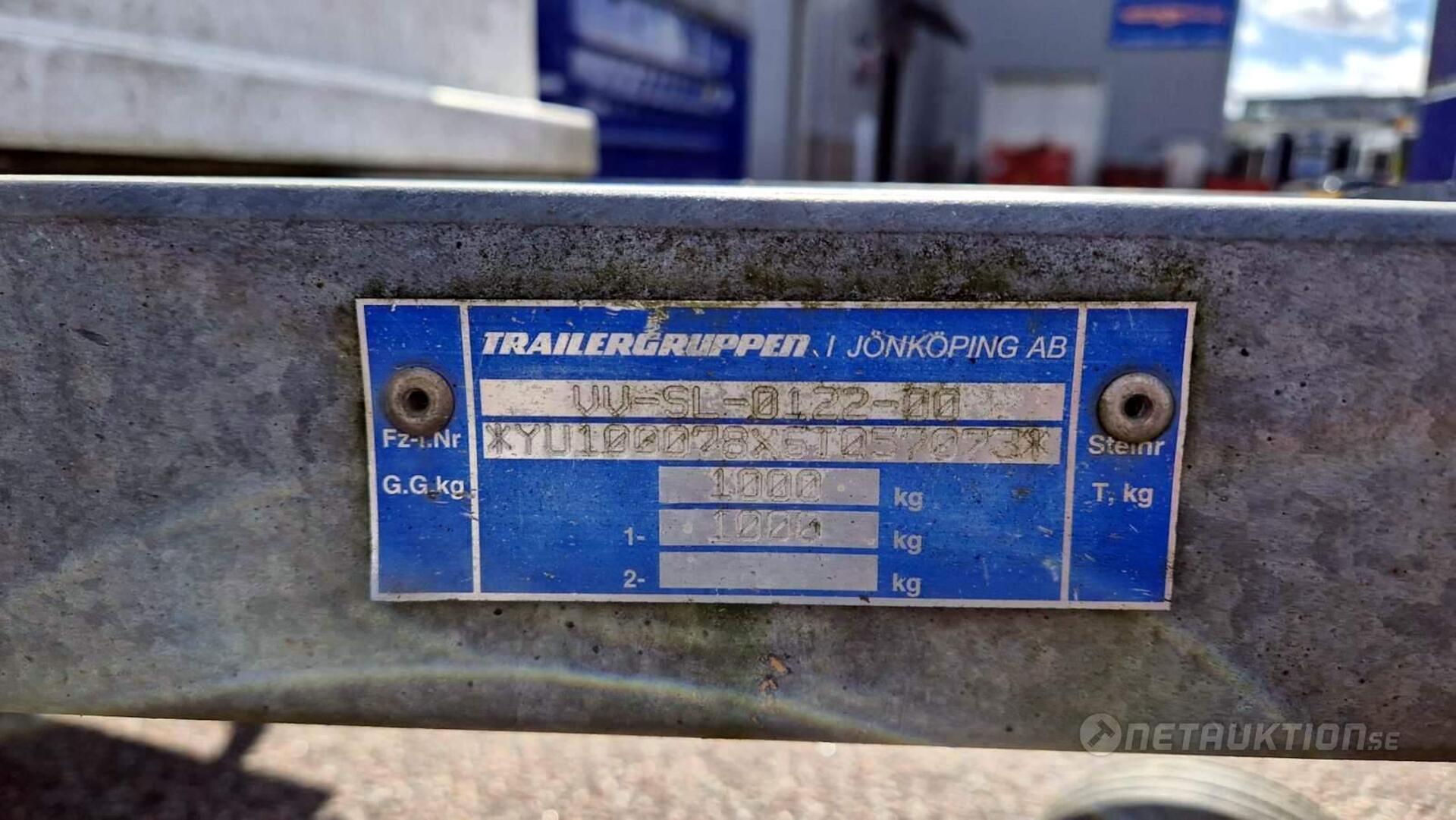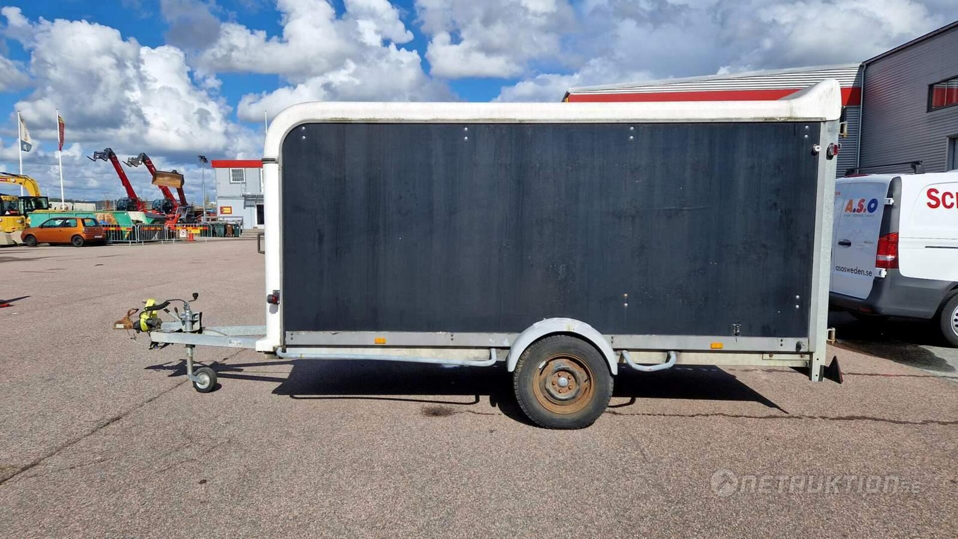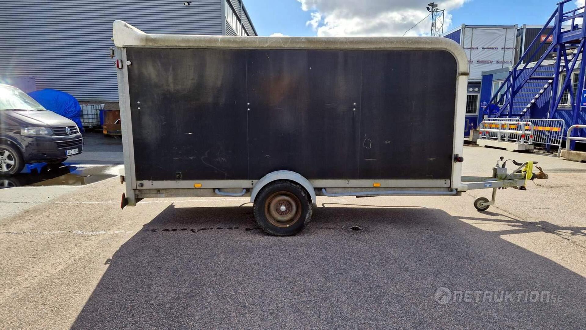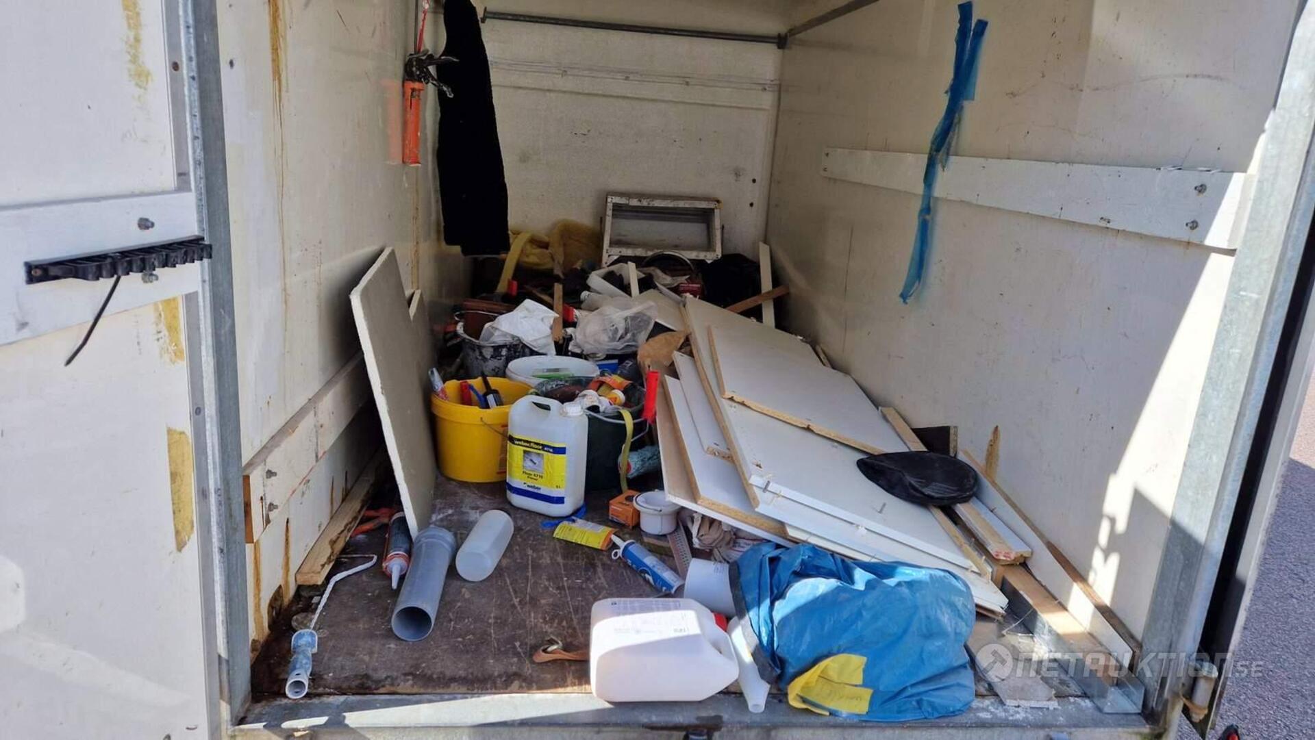 Anmärkning: Handbromsen åker upp i bromsat läge vid enklare test när släpet rullas och har tillfälligt spänts fast/behöver översyn - se bilder.