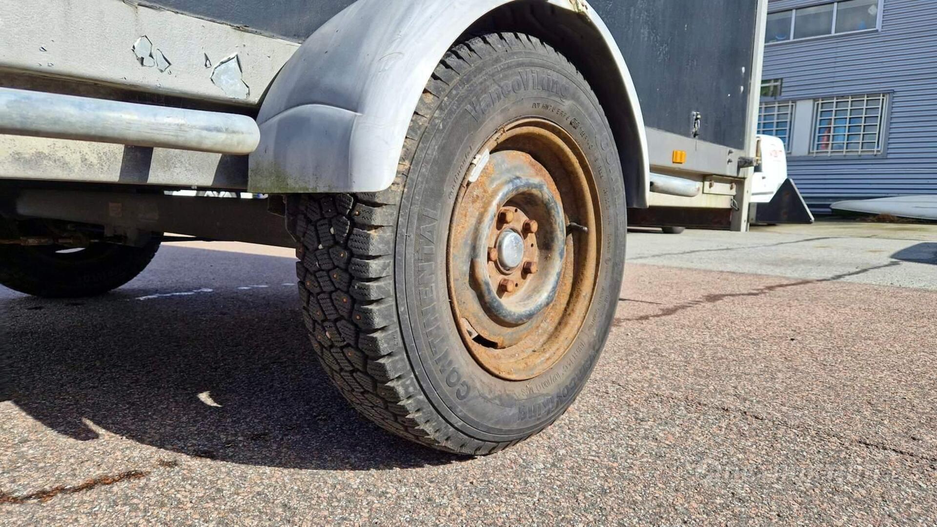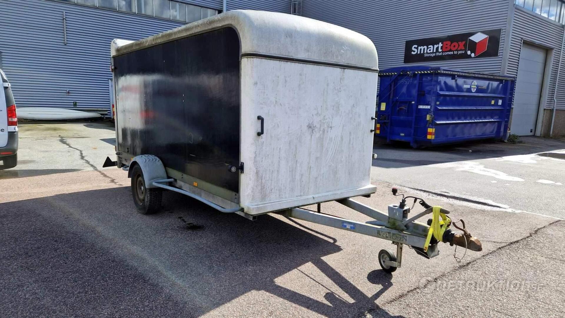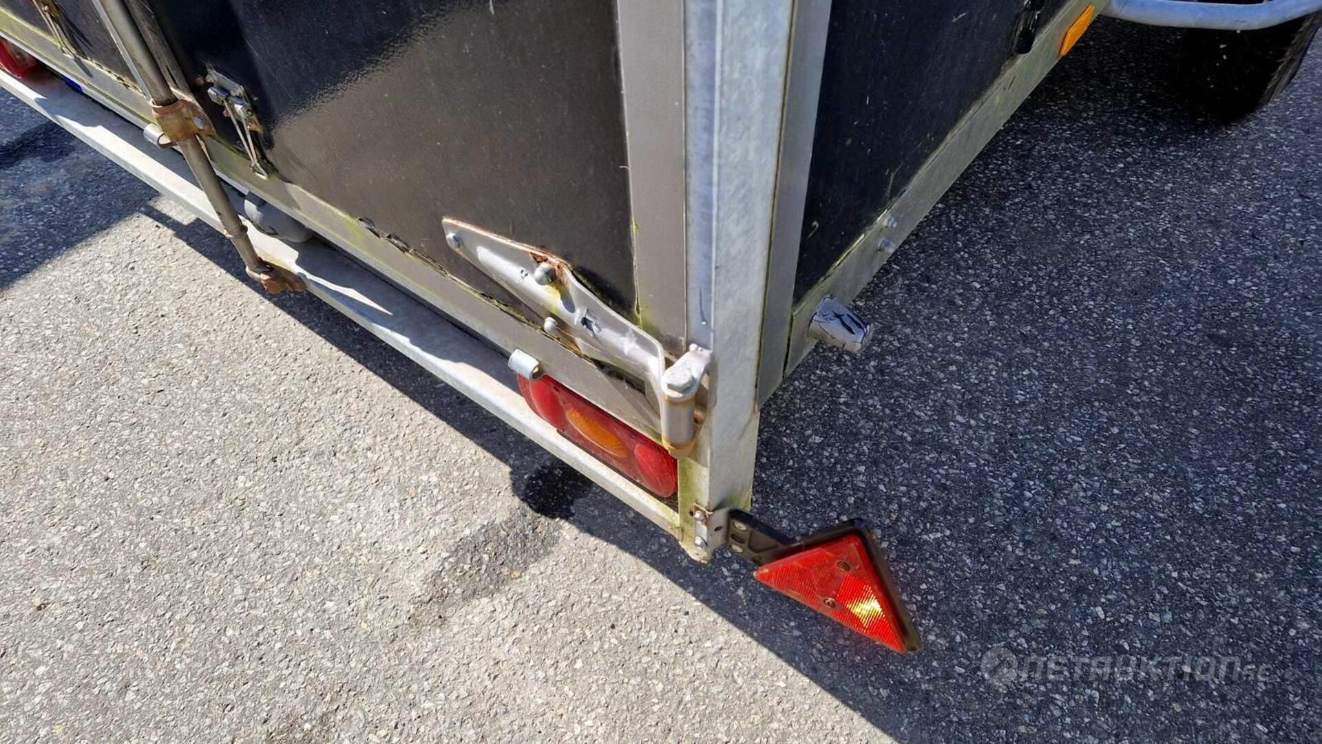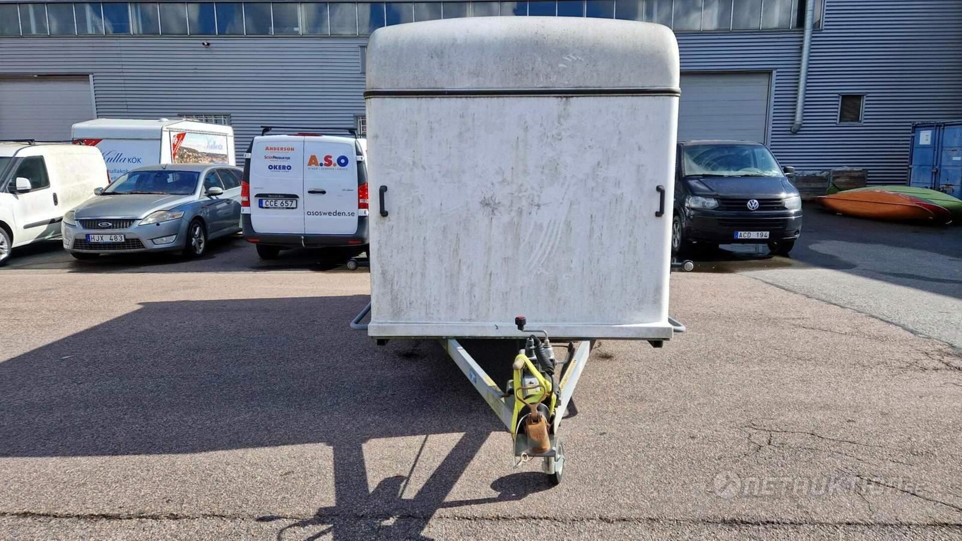 Anmärkning: Handbromsen åker upp i bromsat läge vid enklare test när släpet rullas och har tillfälligt spänts fast/behöver översyn - se bilder.