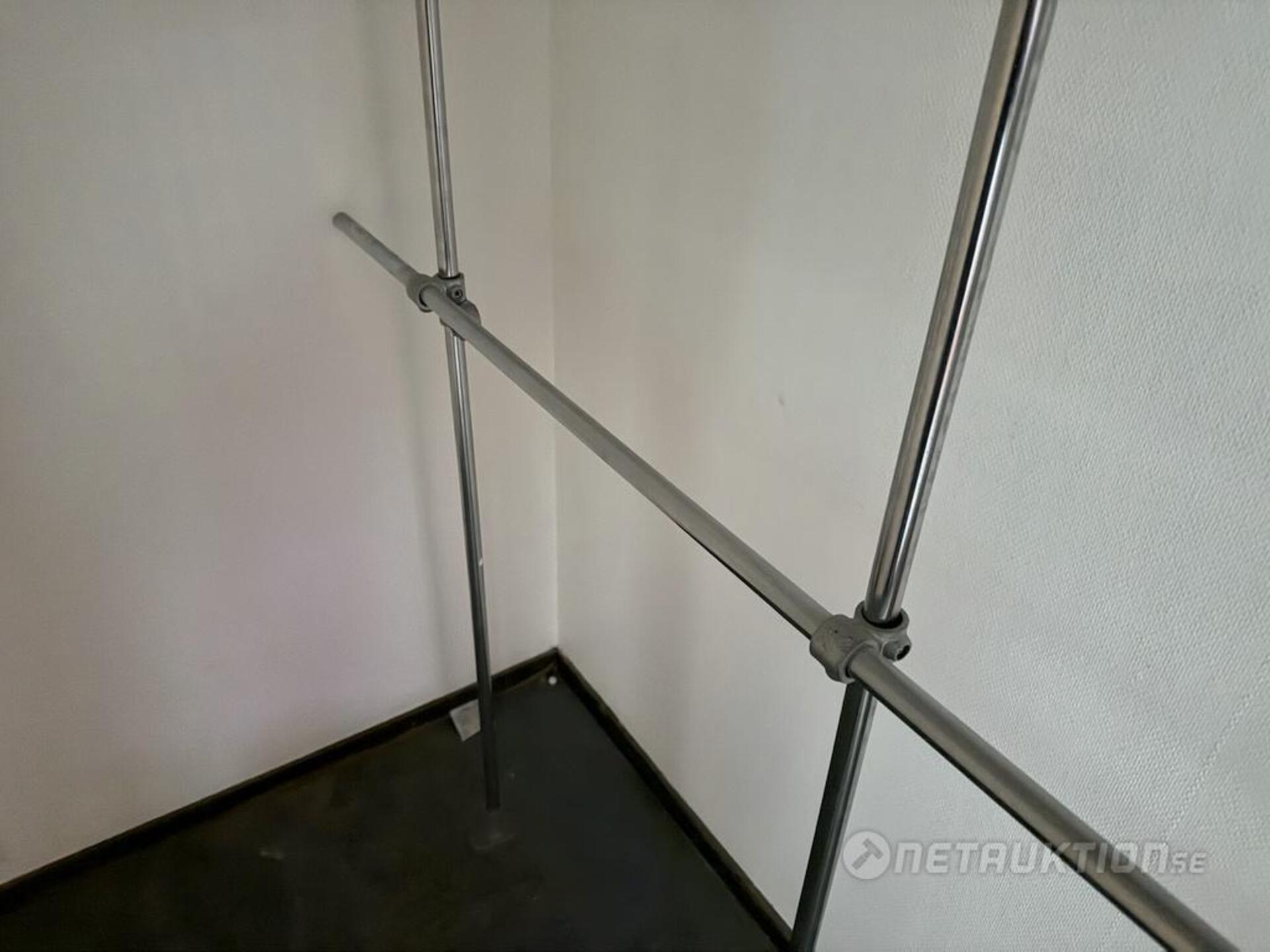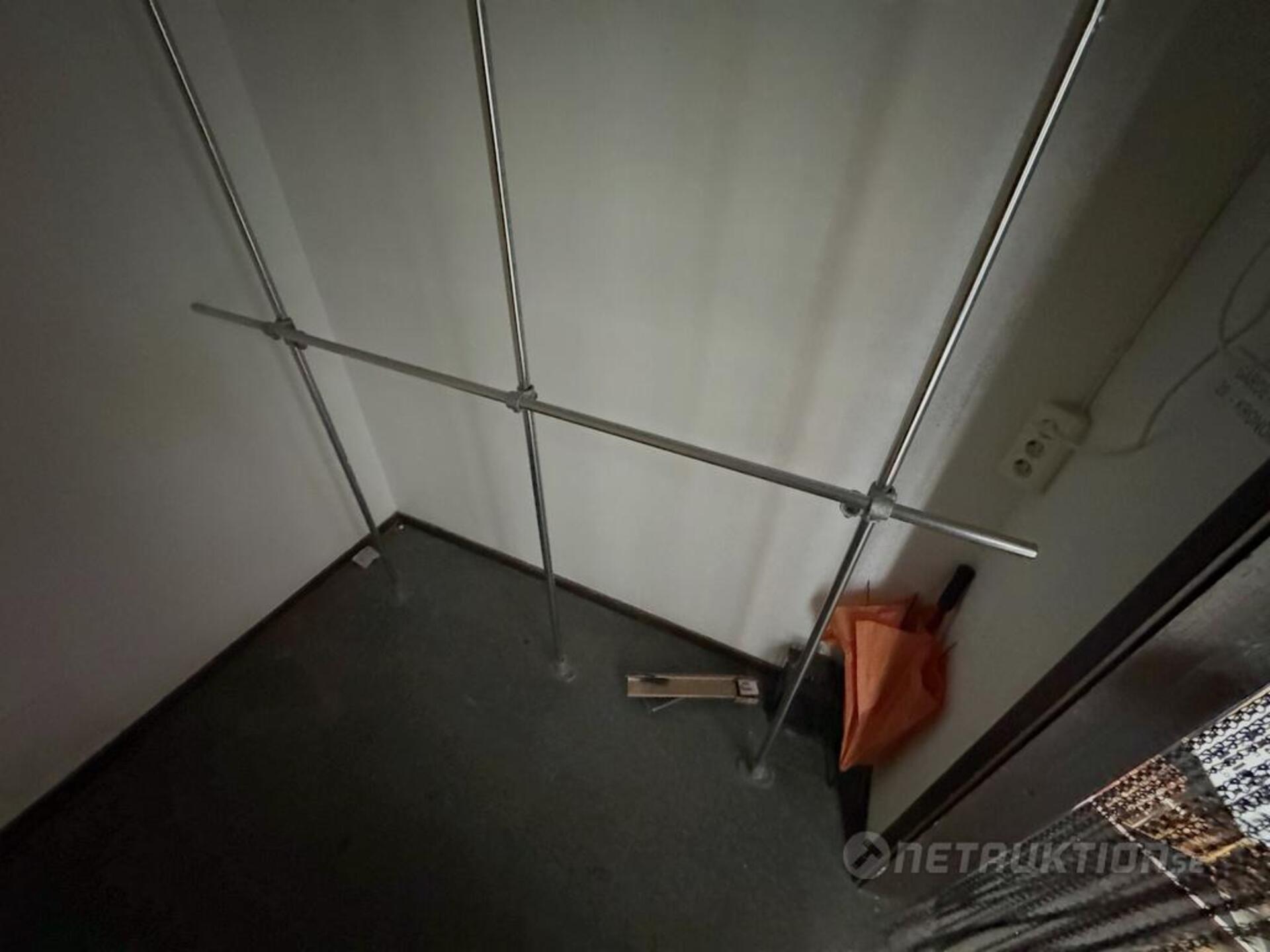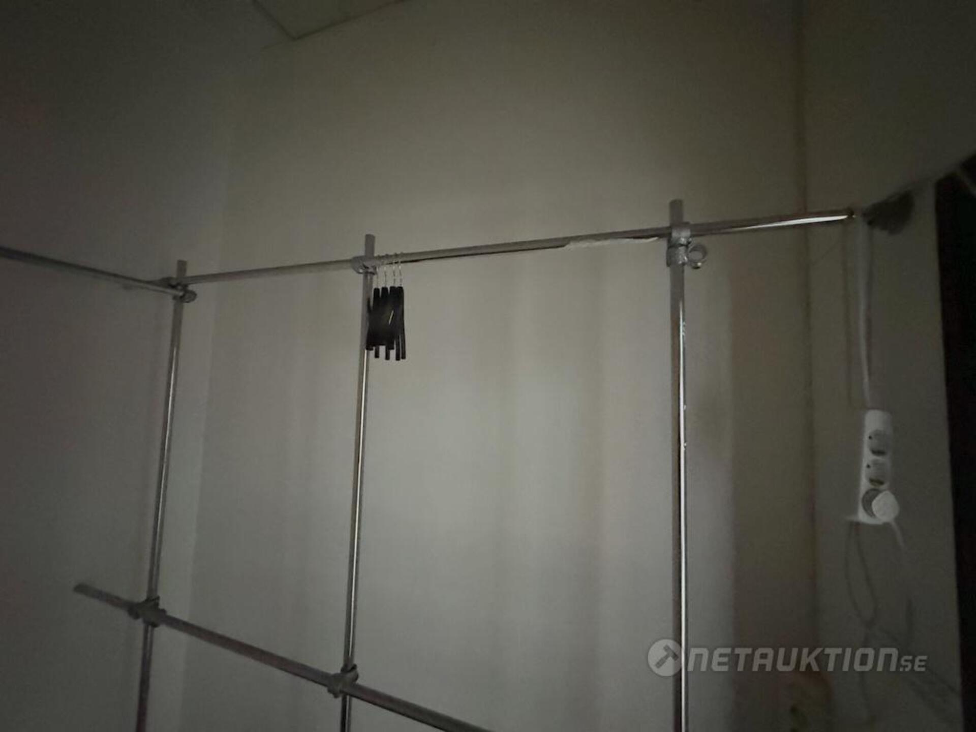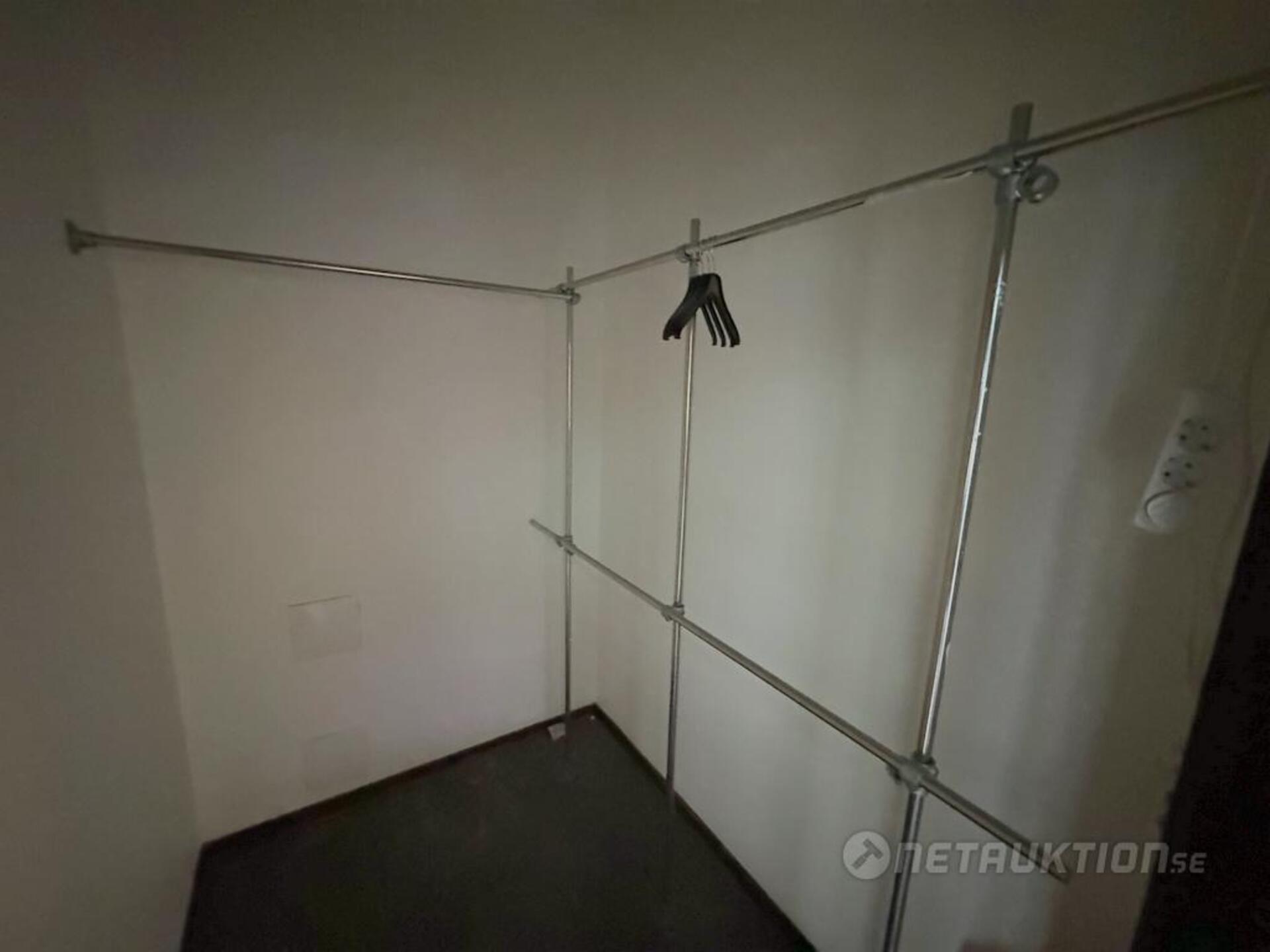 Enklare garderobsinredning, ca 2m högt och 2m brett.