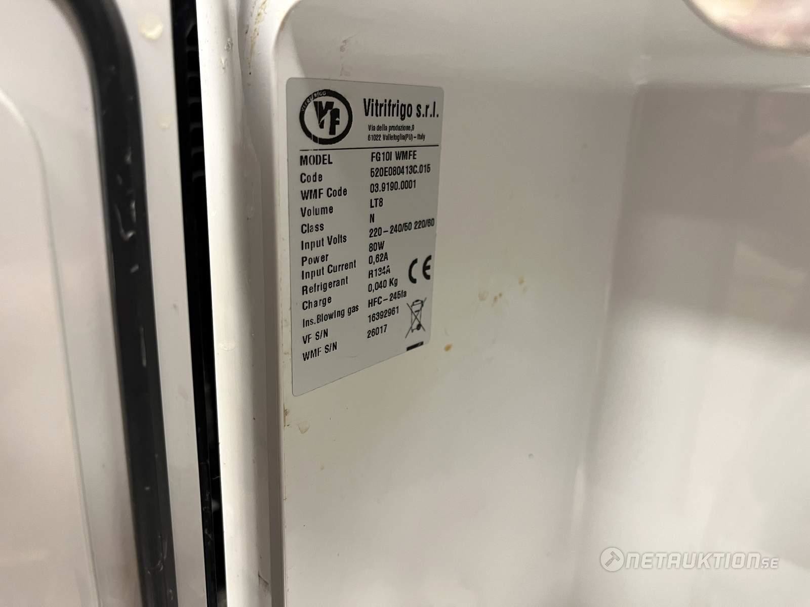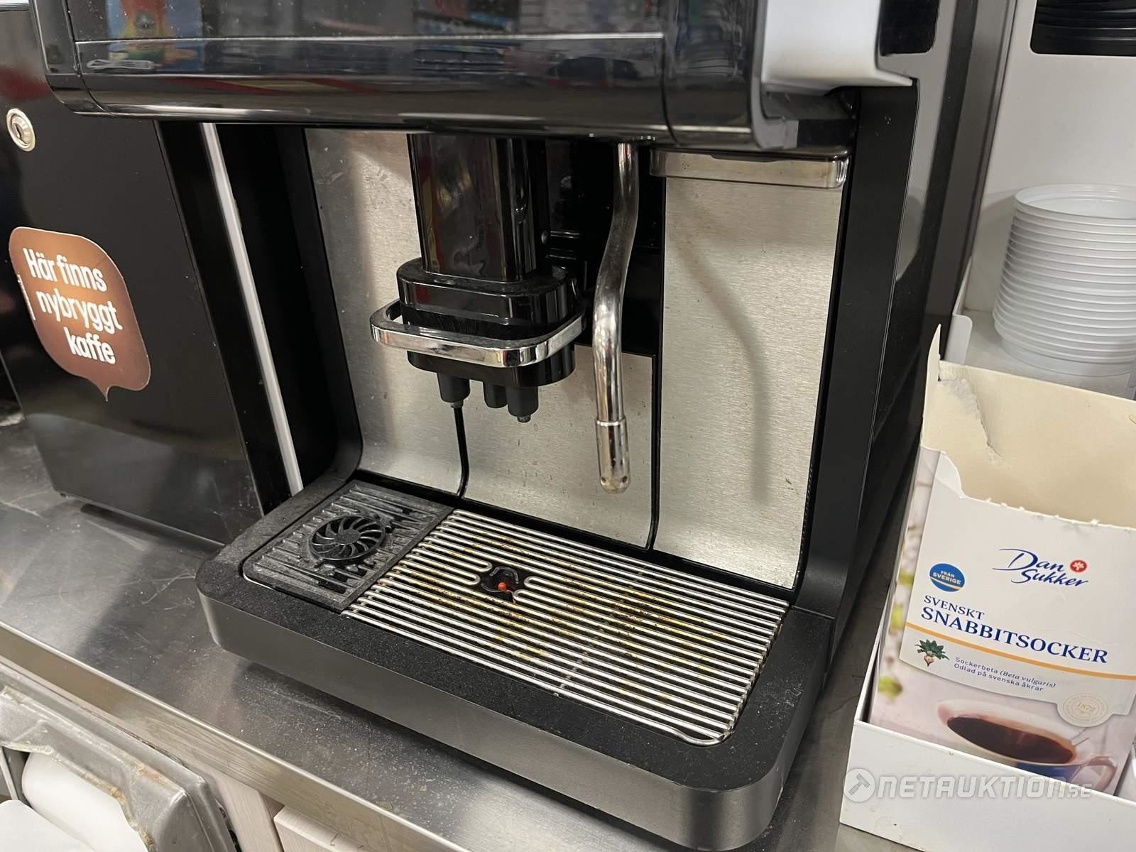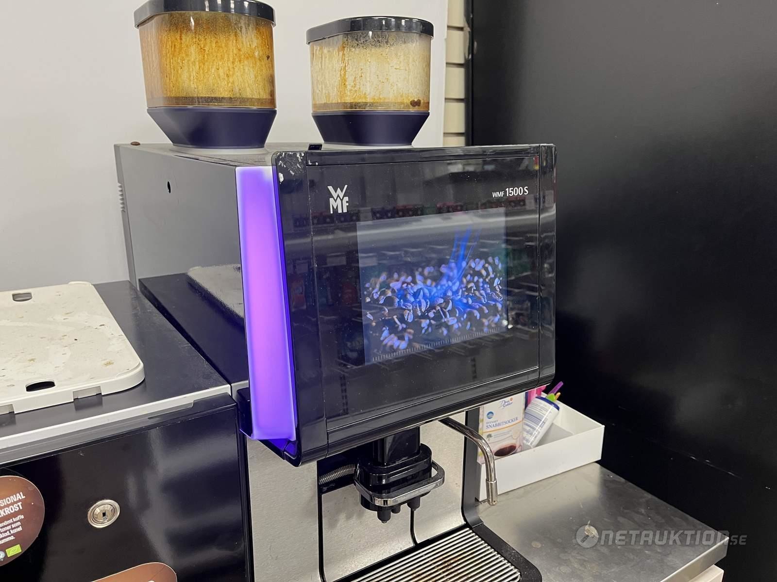 Kaffemaskin från WMF med mjölkkyl och tillbehörsställ.