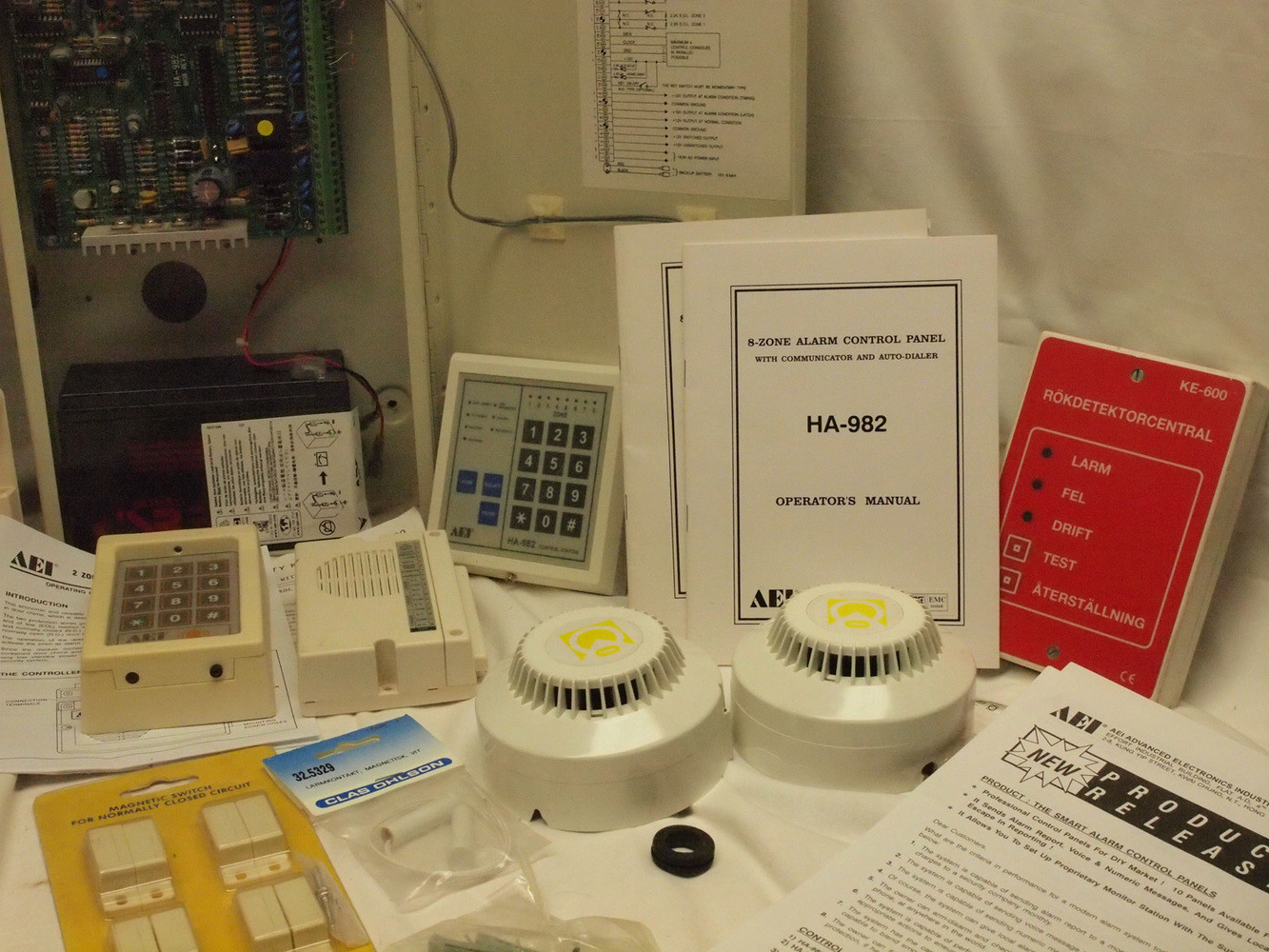 AEI HA-982 8-zoner. Extern manöverpanel. Komplett med backupbatteri(Otestat) och originalmanualer.