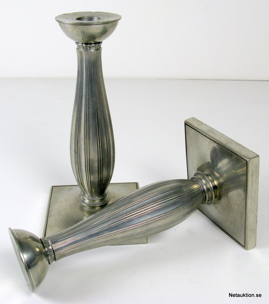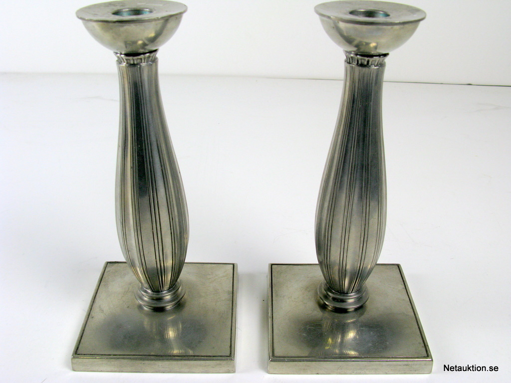 Ett par ljusstakar i tenn, dansk design från Just Andersen nr 2403.