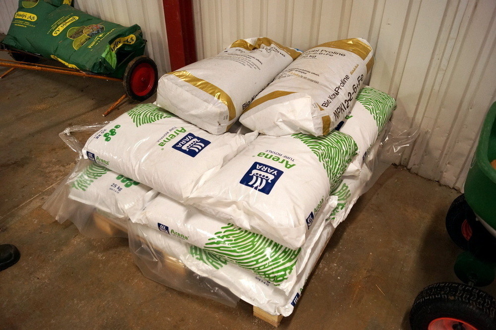 ca: 250kg gödsel, ca 10st säckar.