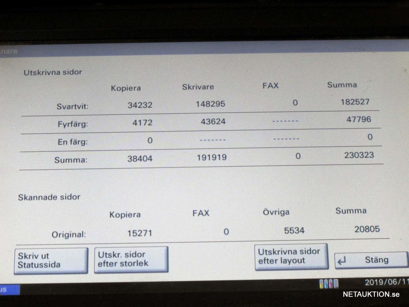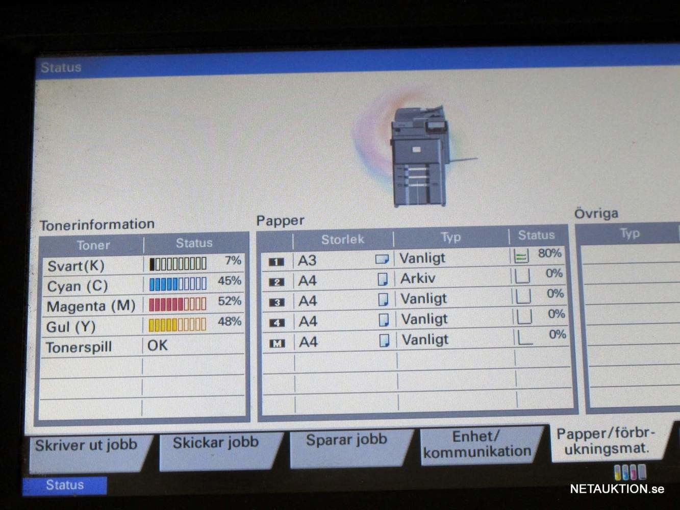 - se bilder för information om jobb- & tonerstatus.