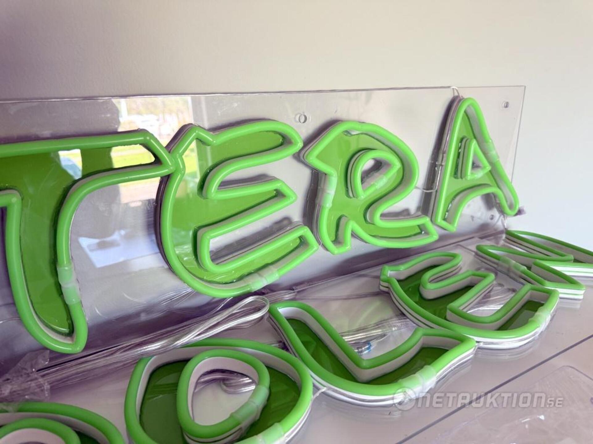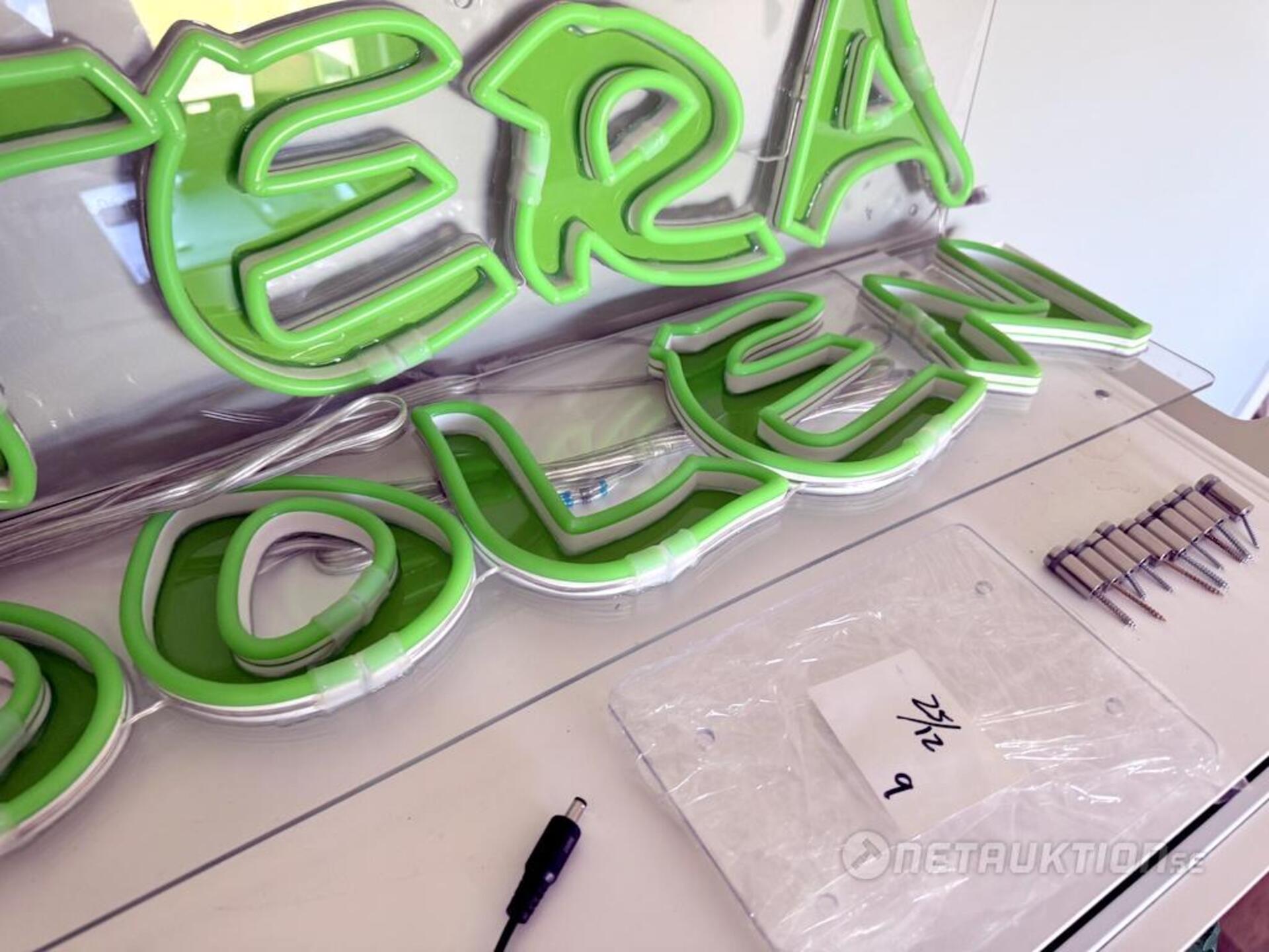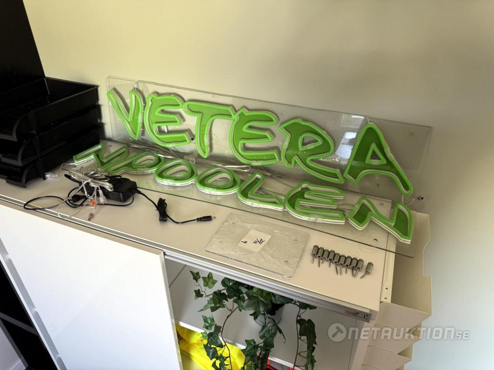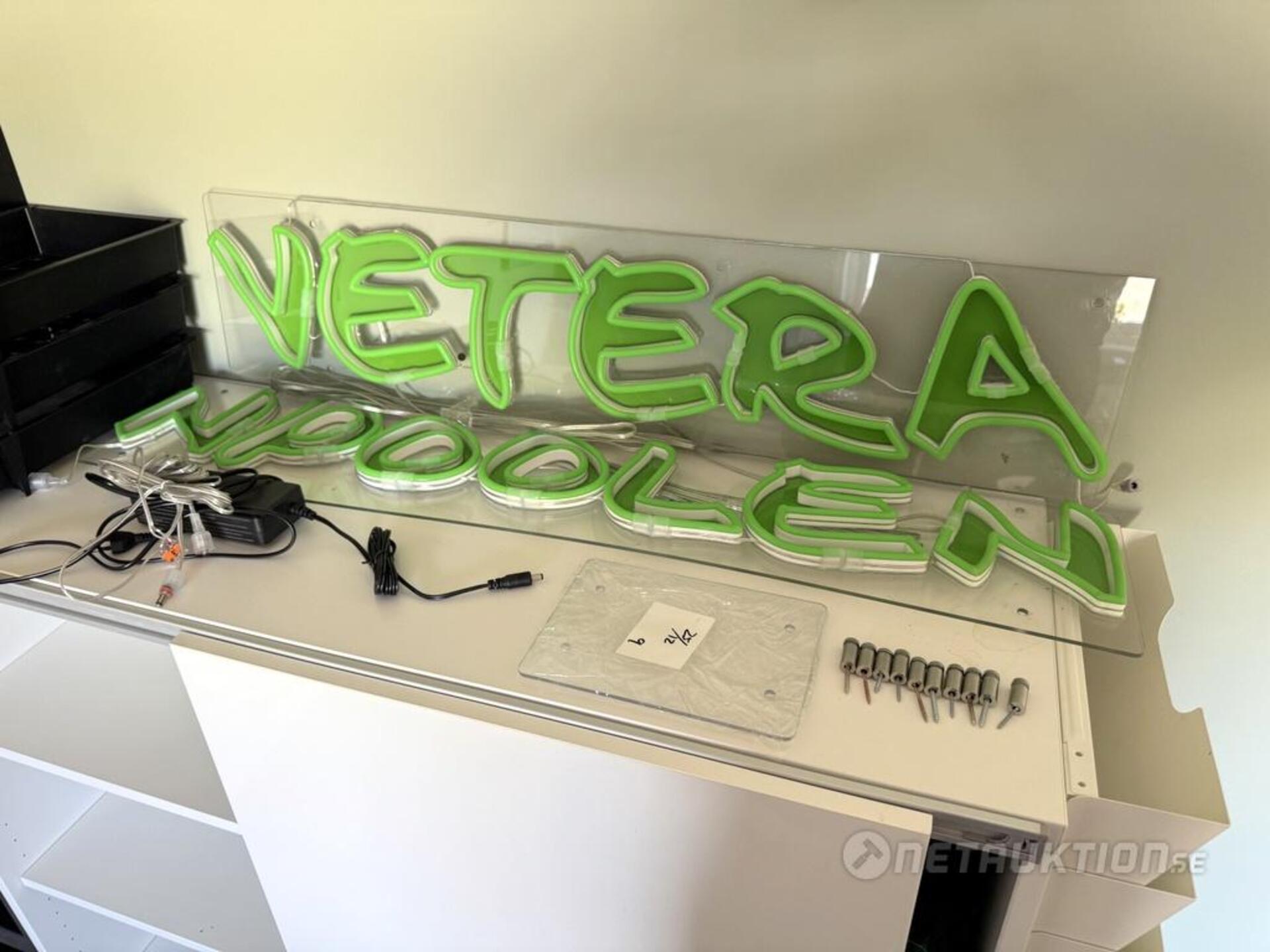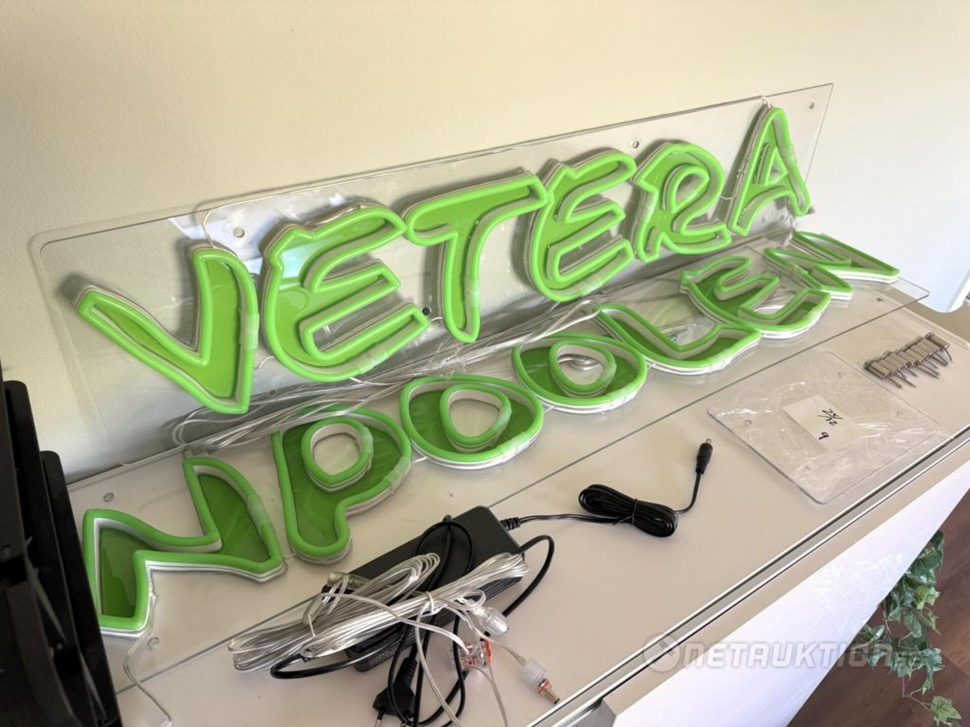 Neonskylt/LED med texten "Veteranpoolen".