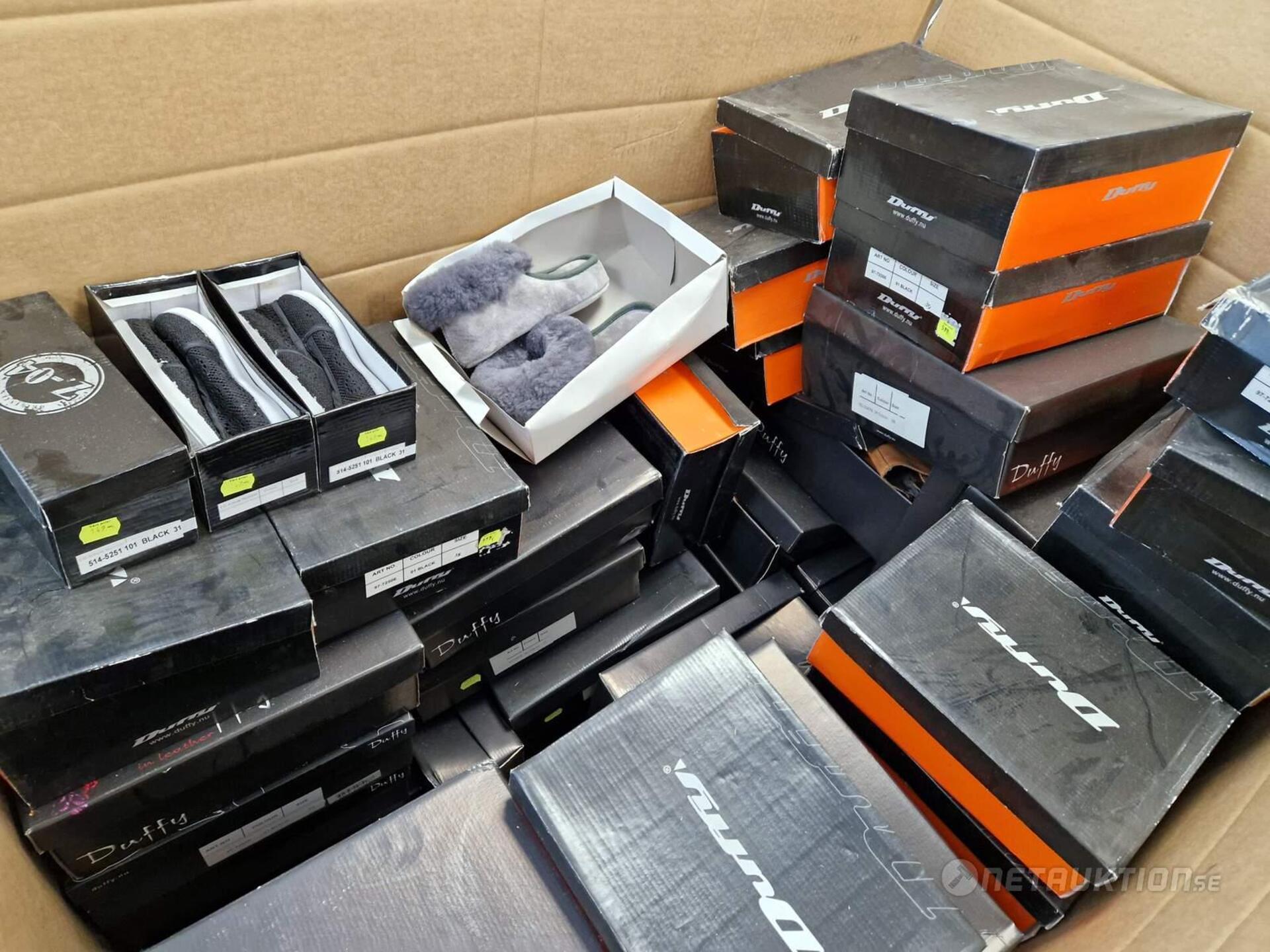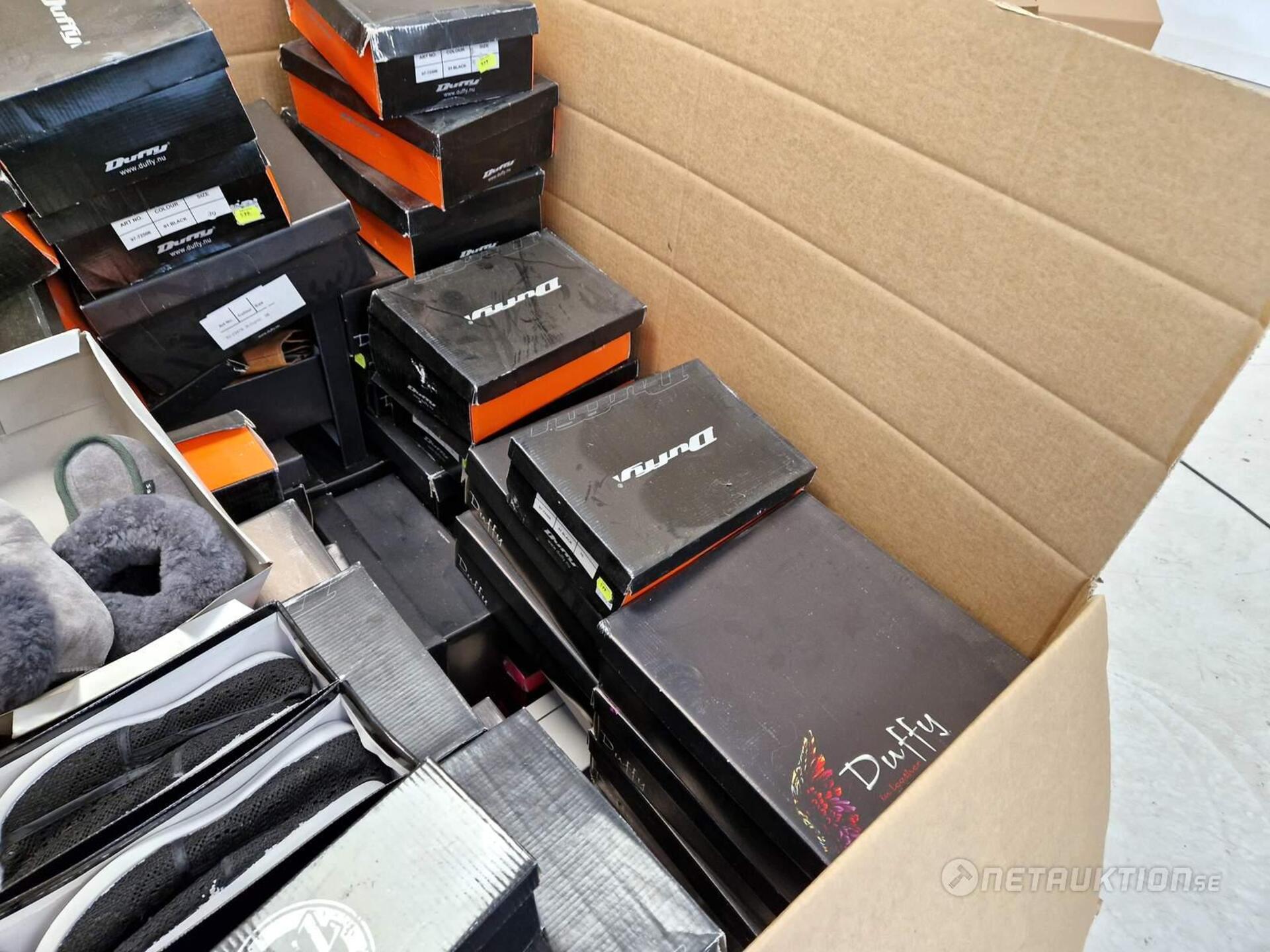 Pall med uppskattningsvis 50st skokartonger.