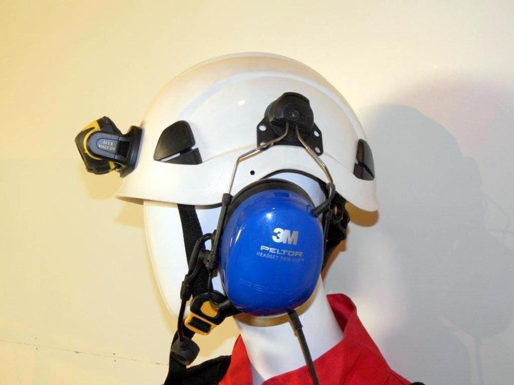 Petzl skyddshjälm med Peltor headset.