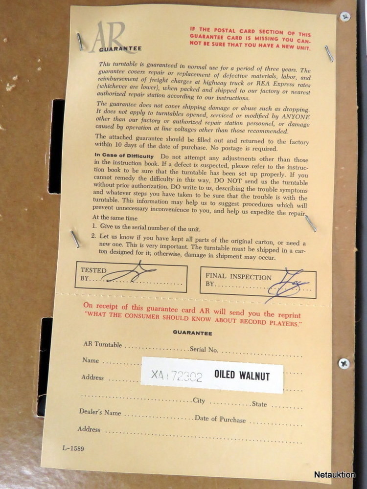 - 1st skivspelare, Acoustic Research AR-XA