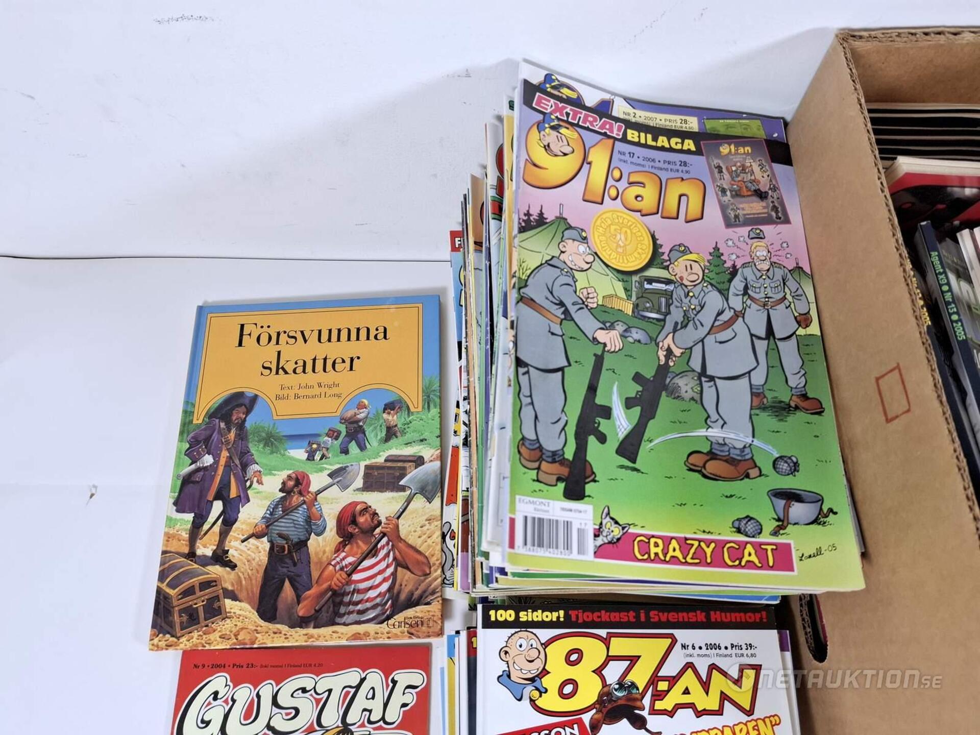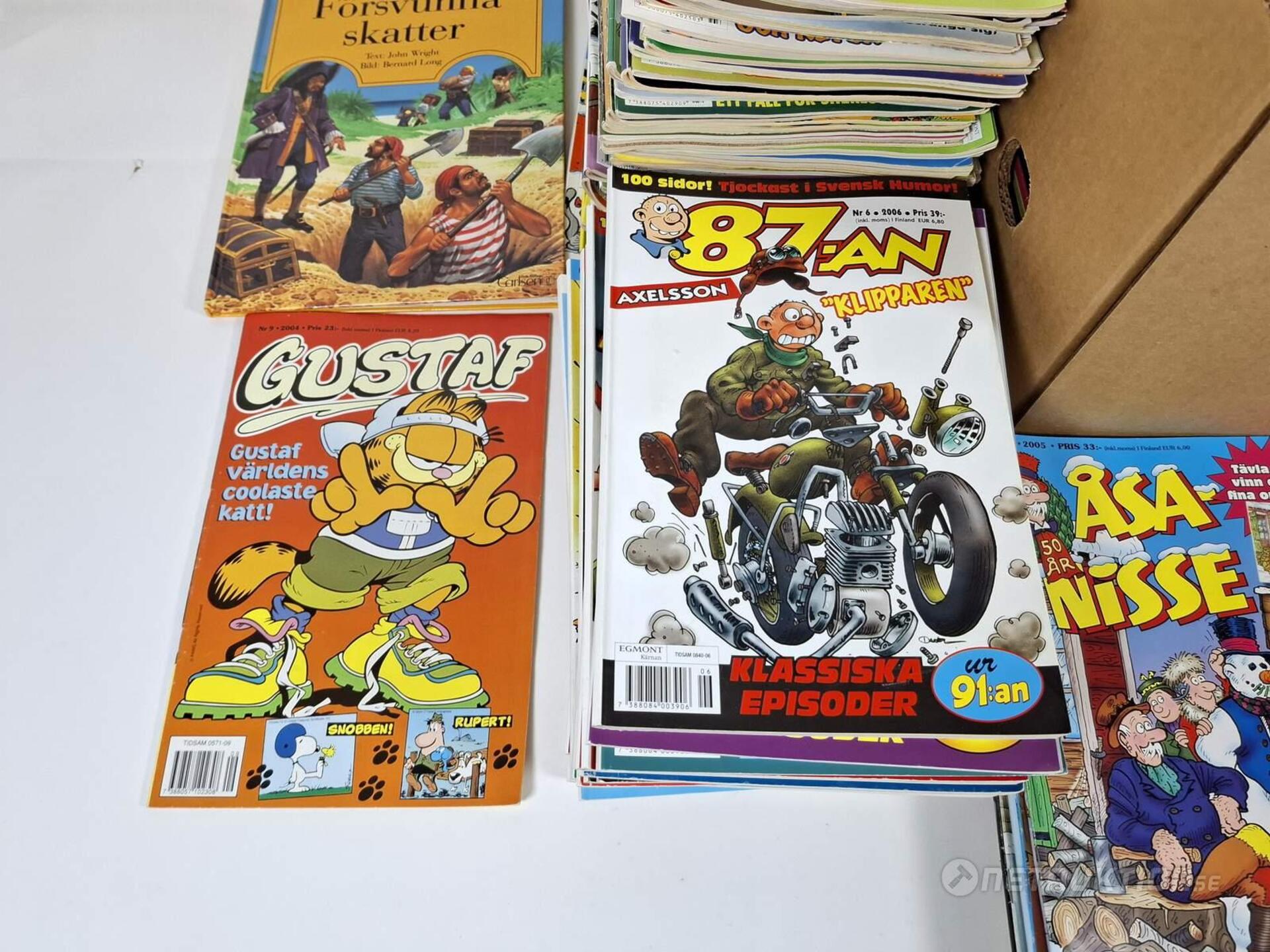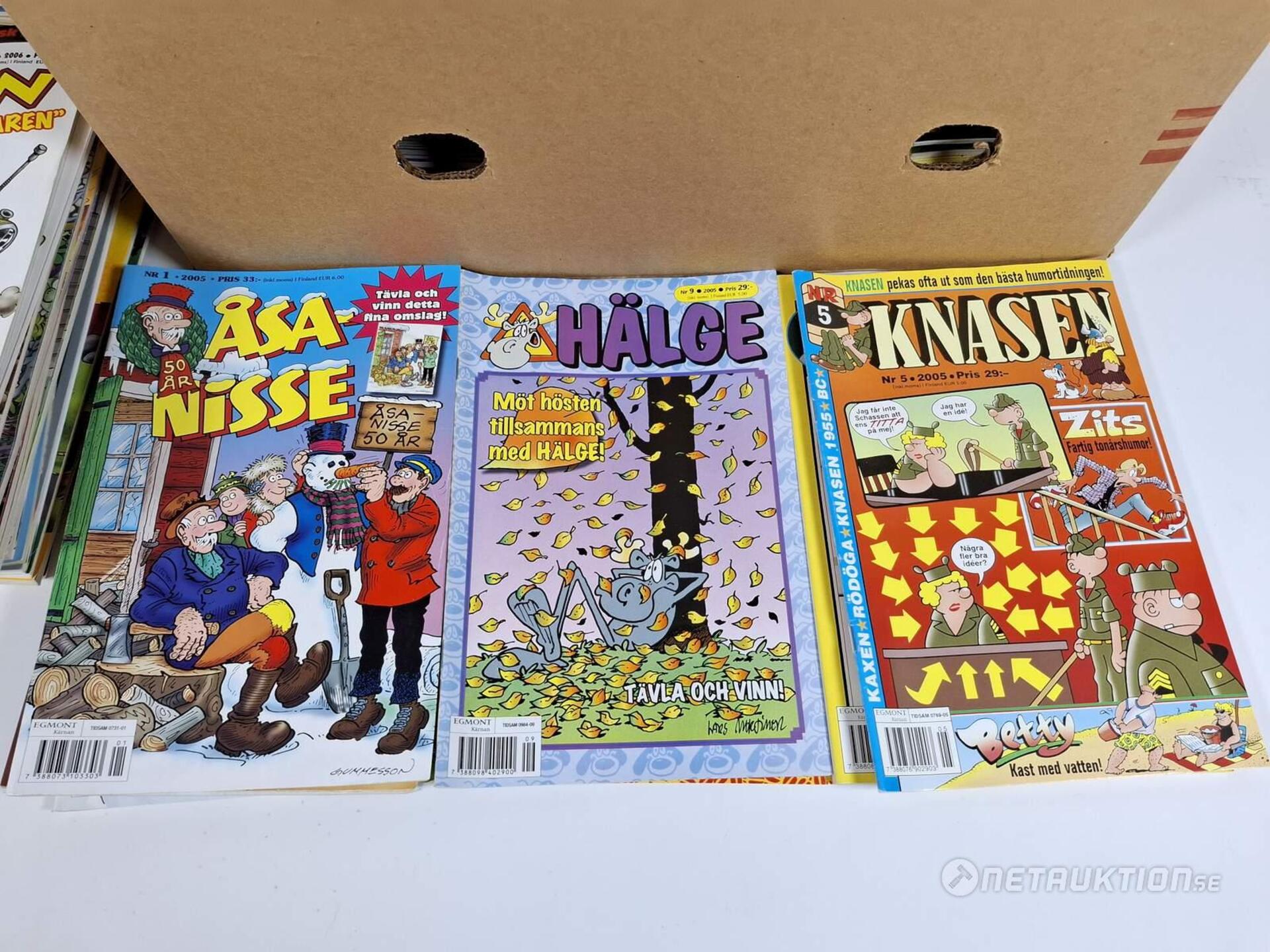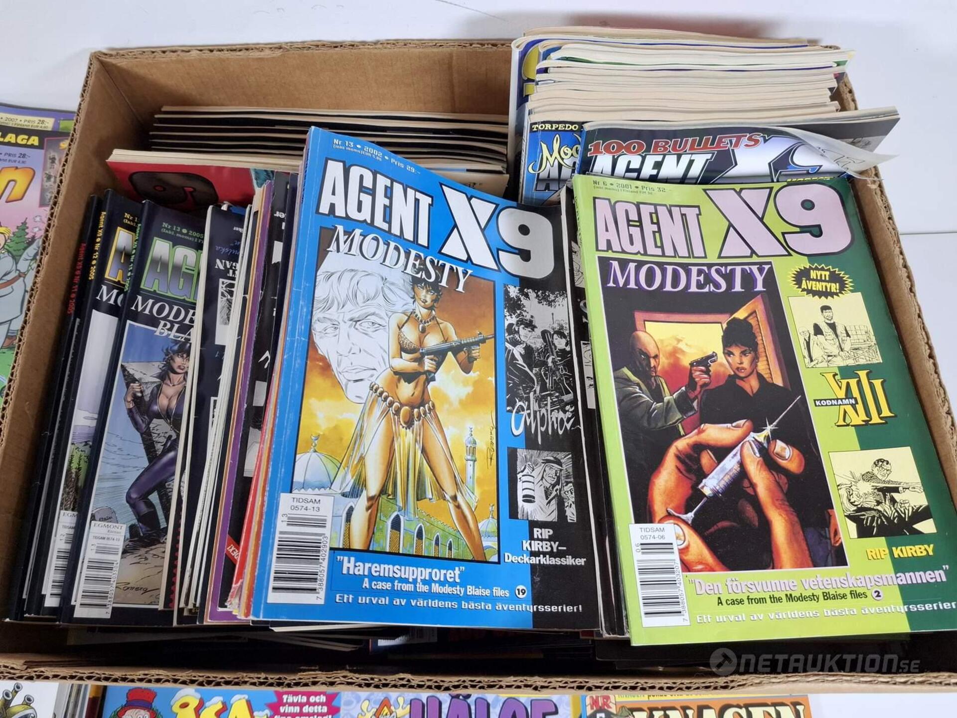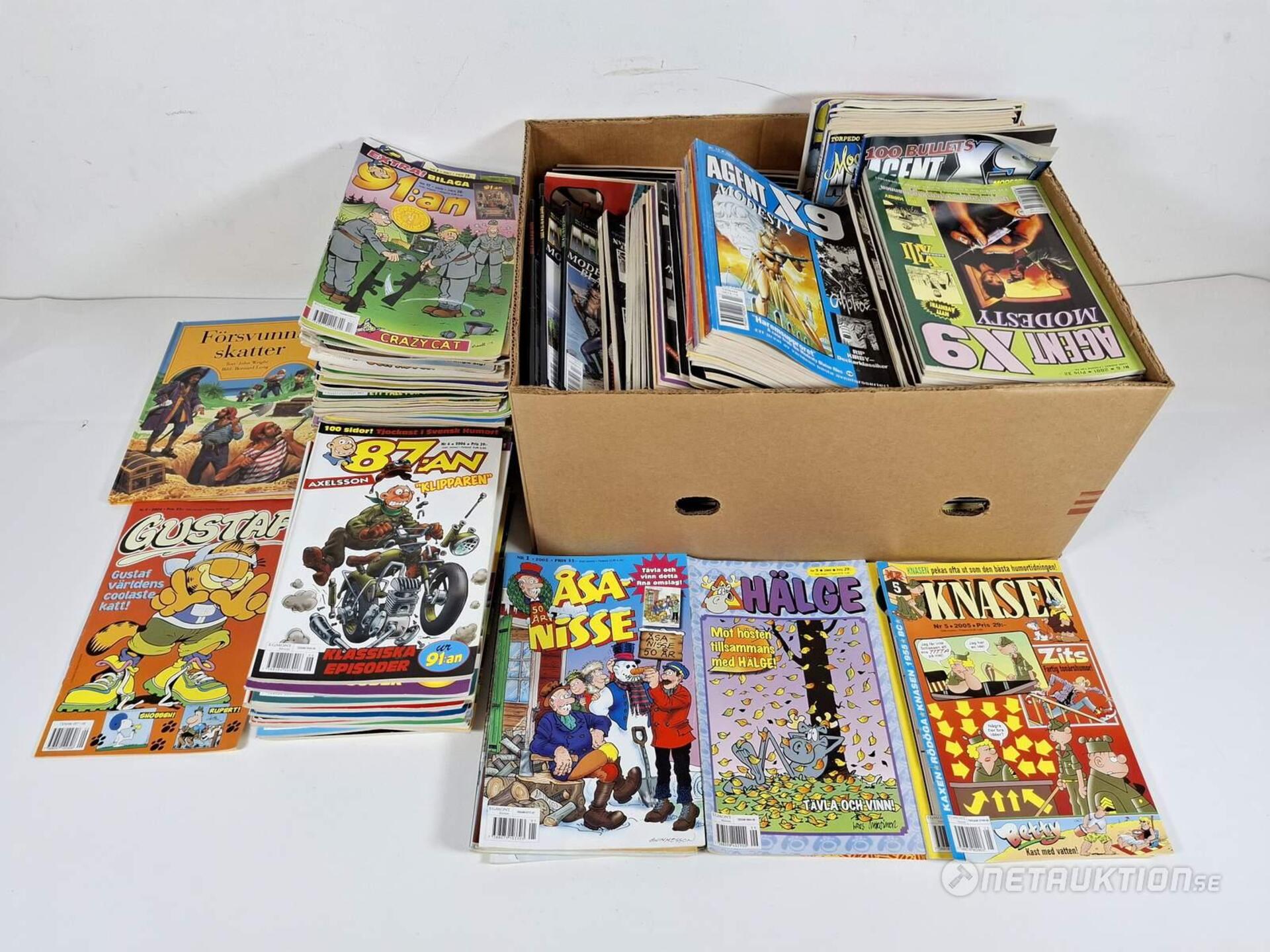 Serietidningar Från serier såsom Agent X9, 91:an, 87:an, åsa-nisse, knasen och Hälge.
