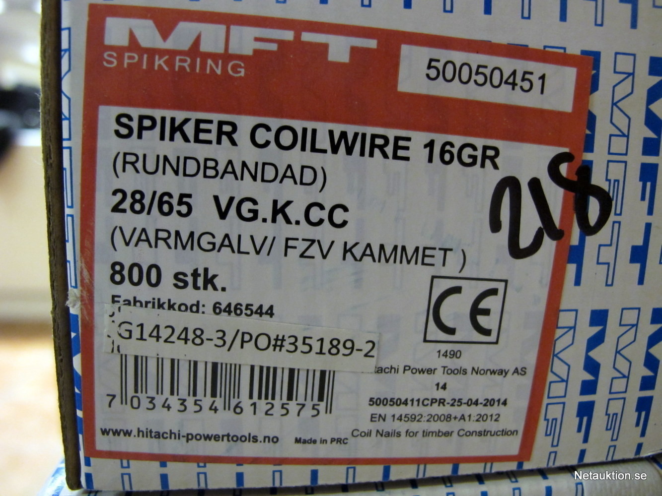 12st kartonger á 800st spik, 28/65 VG.K.CC.