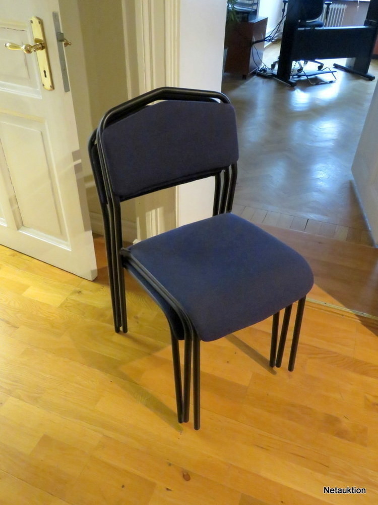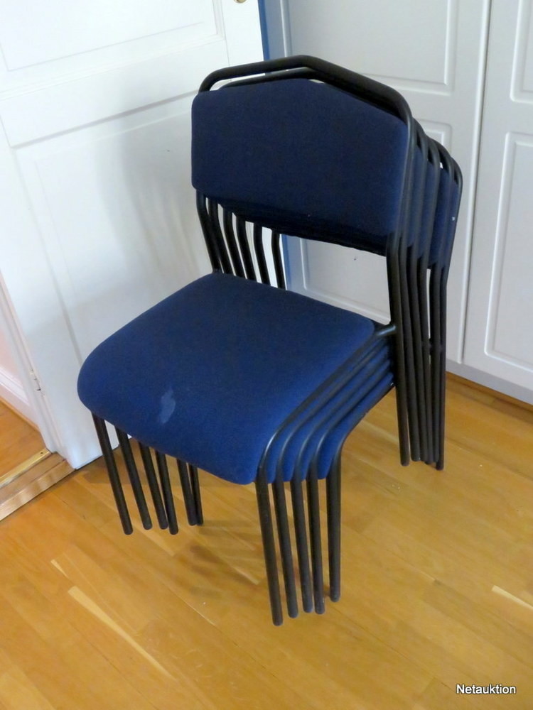 Stapelbara stolar i blått och svart, bra bruksskick.