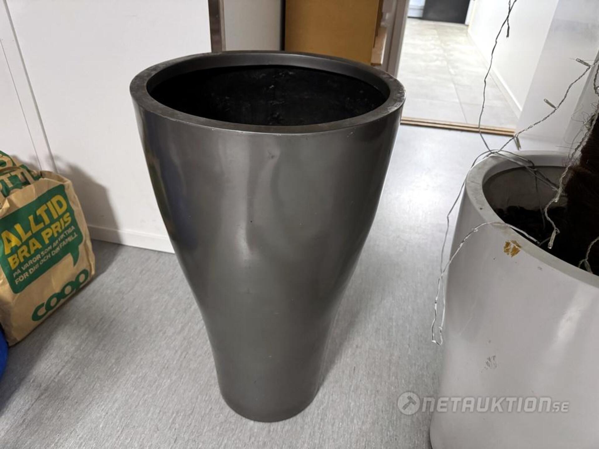 2st större krukor, grå 89x51cm, vit 75x51cm.