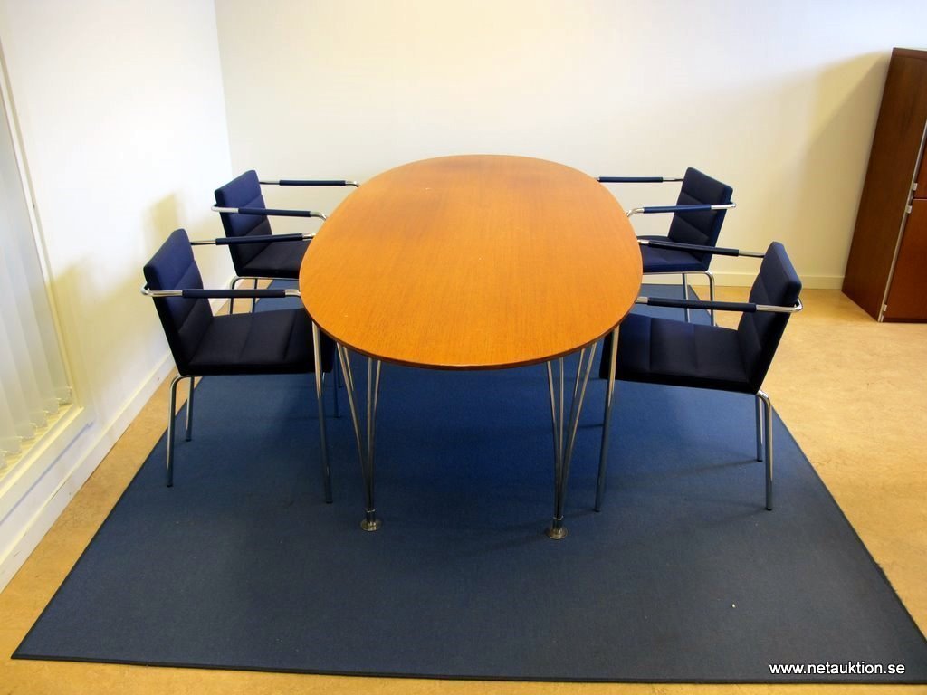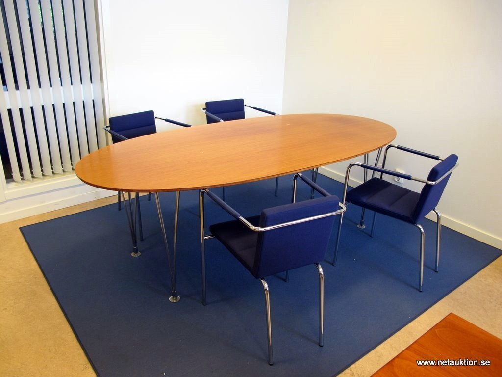 Ovalt bord, Mathsson Super Elips (Bordsskivan skiftar i färg/solblekt fläckvis, samt att hack/märken i kanterna förekommer.)