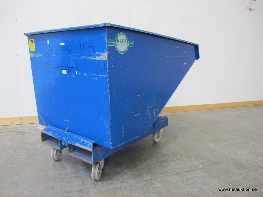 Tippcontainer med hjul för truck, blå