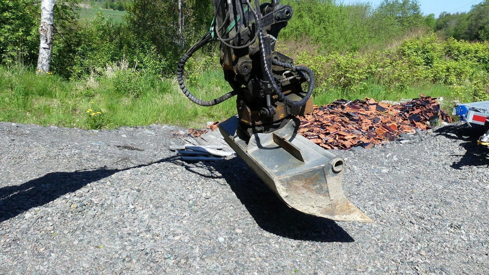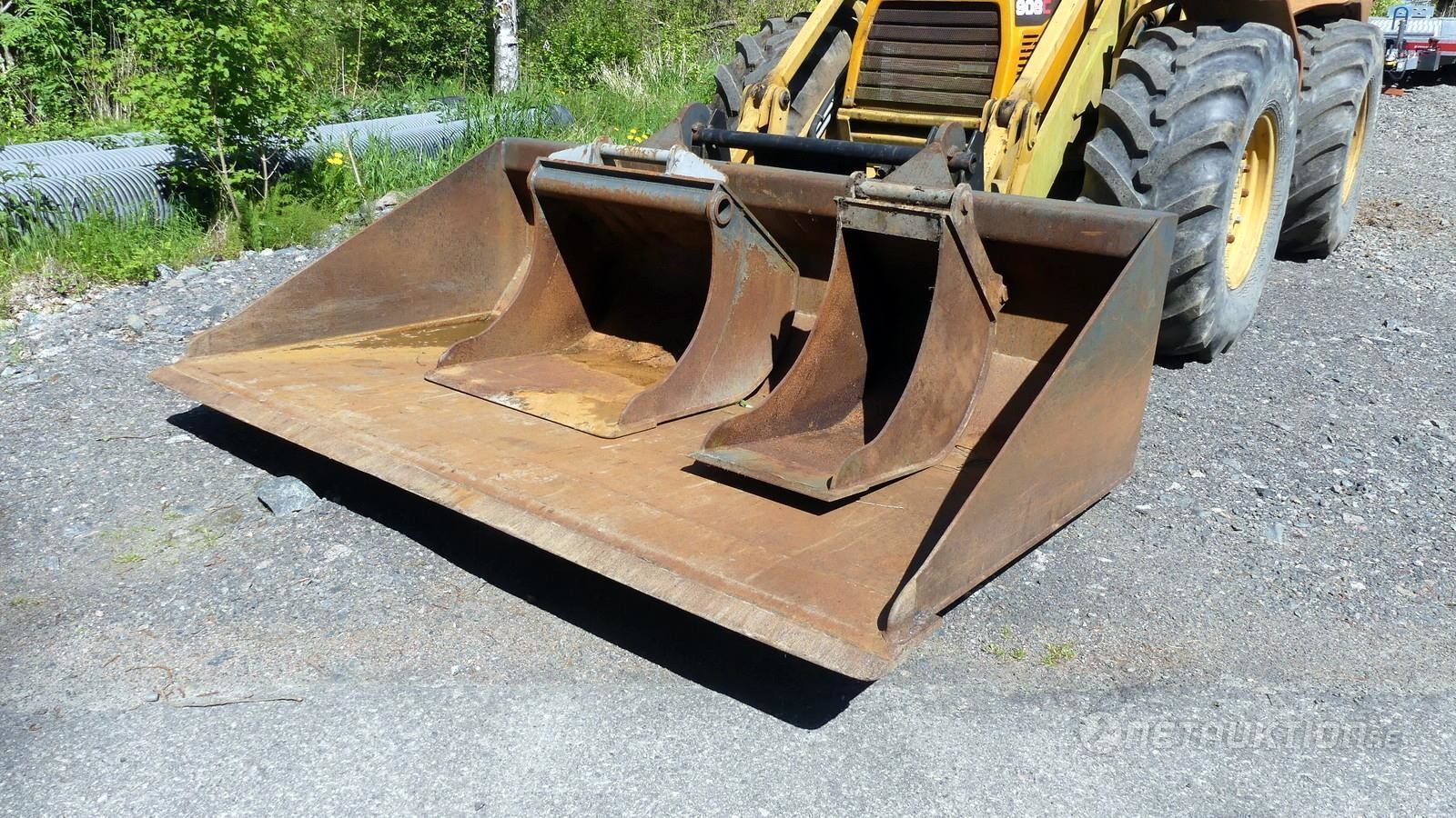 3 skopor, en planering- och en grävskopa. Den tredje kabelskopan, har ej samma fäste och måste byggas om.