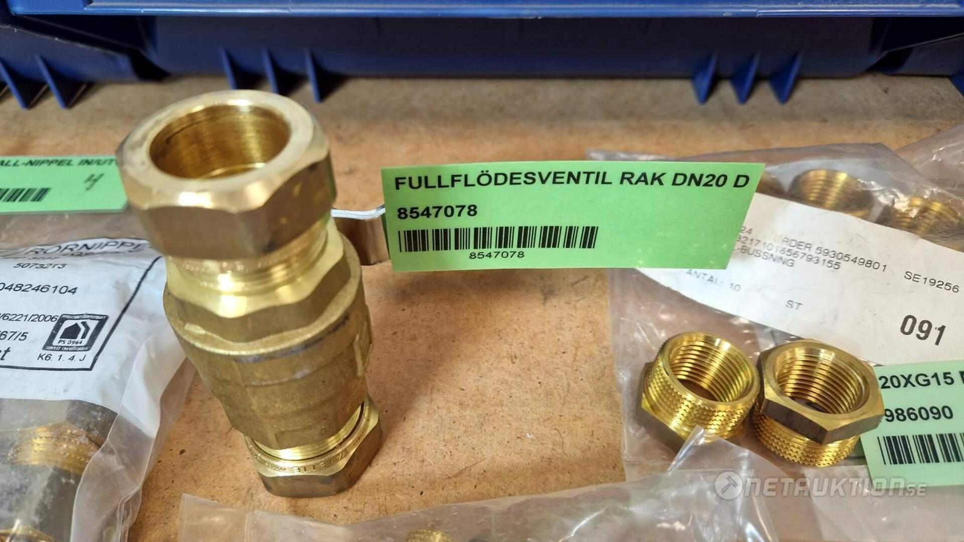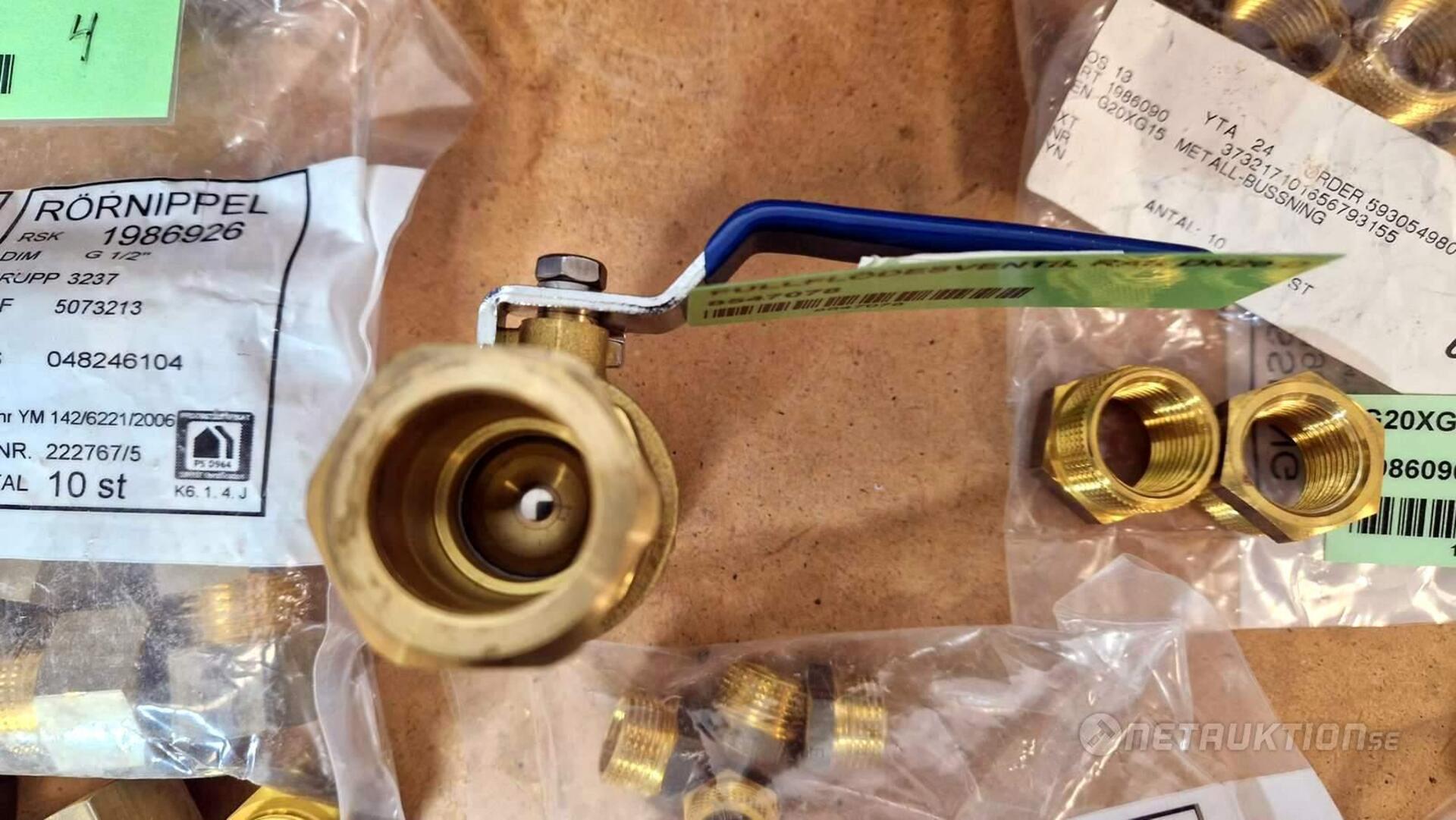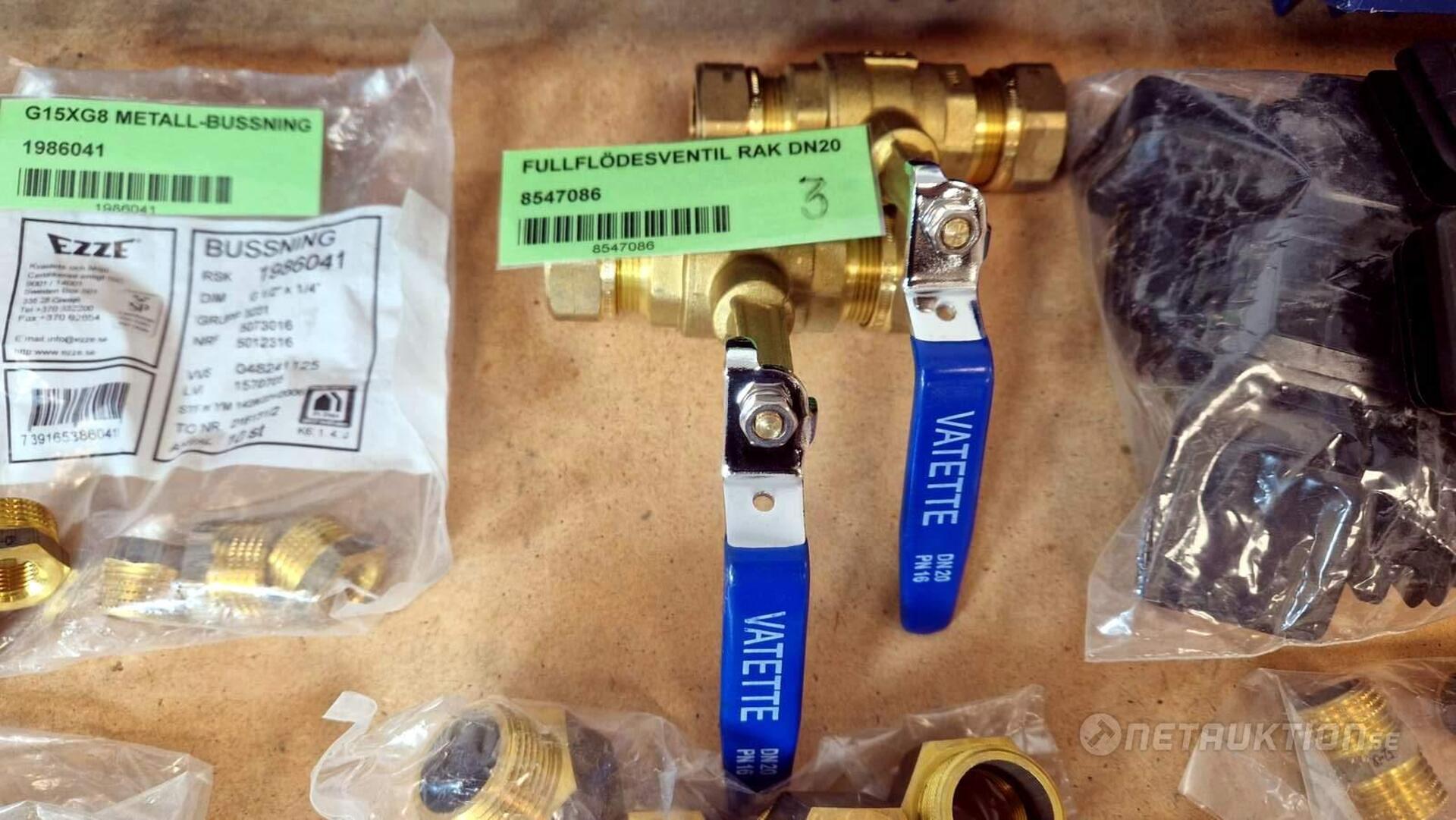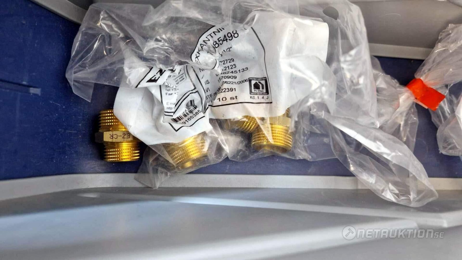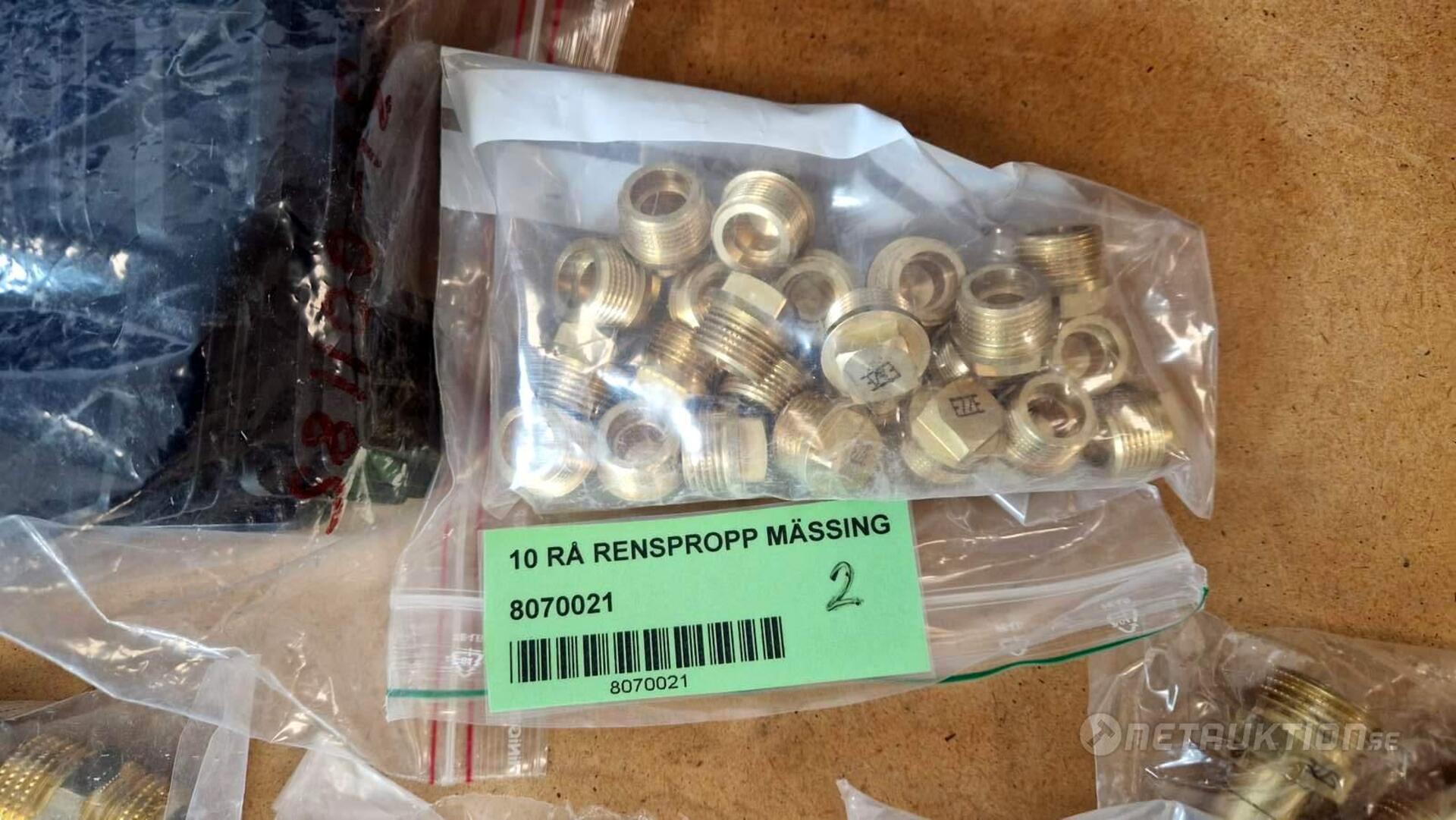 Flödesventiler, kopplingar, samlingsrör, nippel, bussningar, slangklämmor, rensproppar, mm.