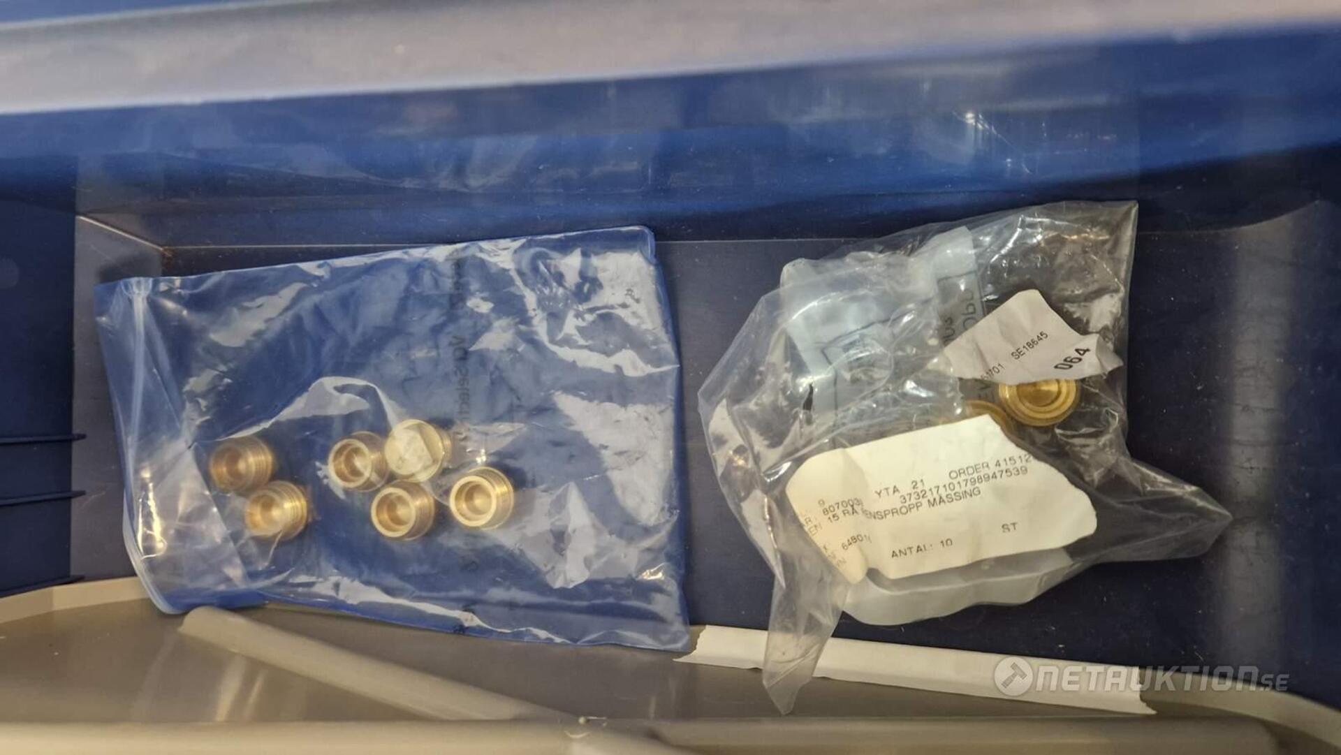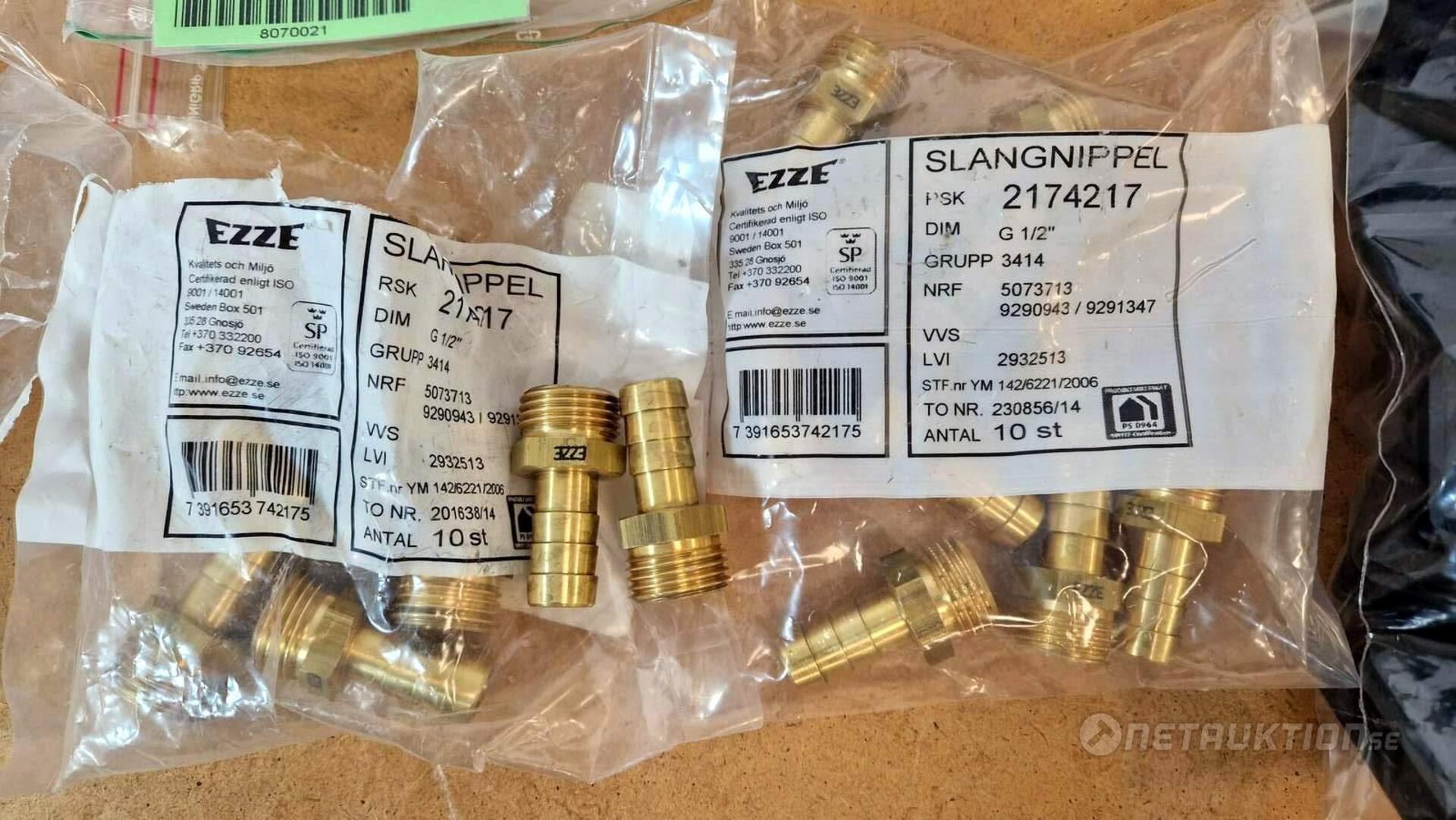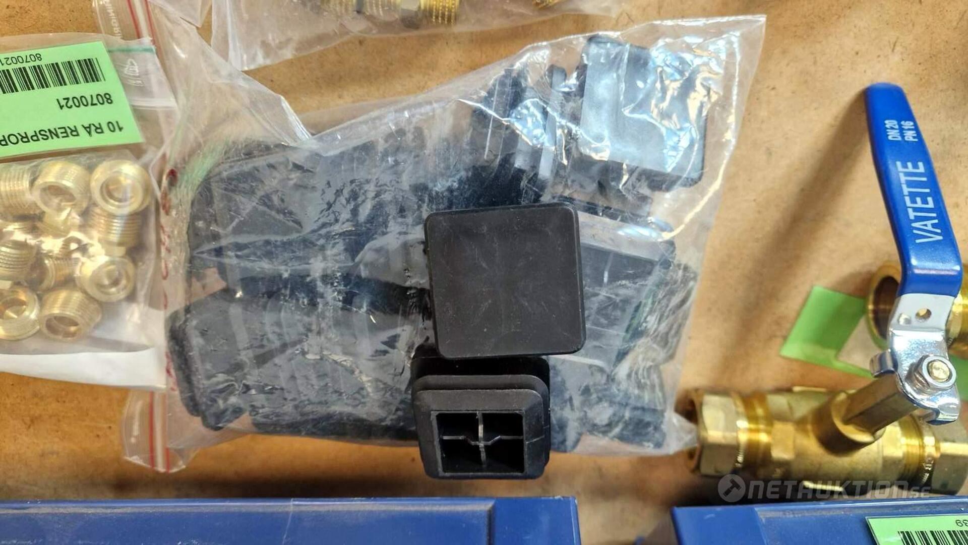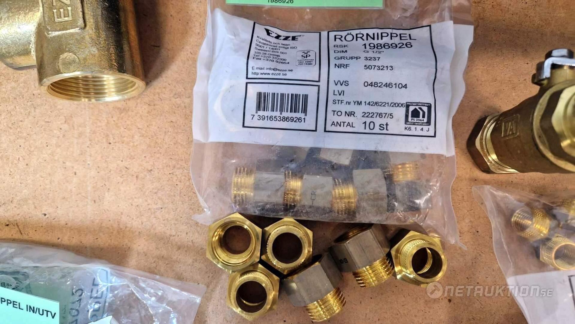 Flödesventiler, kopplingar, samlingsrör, nippel, bussningar, slangklämmor, rensproppar, mm.