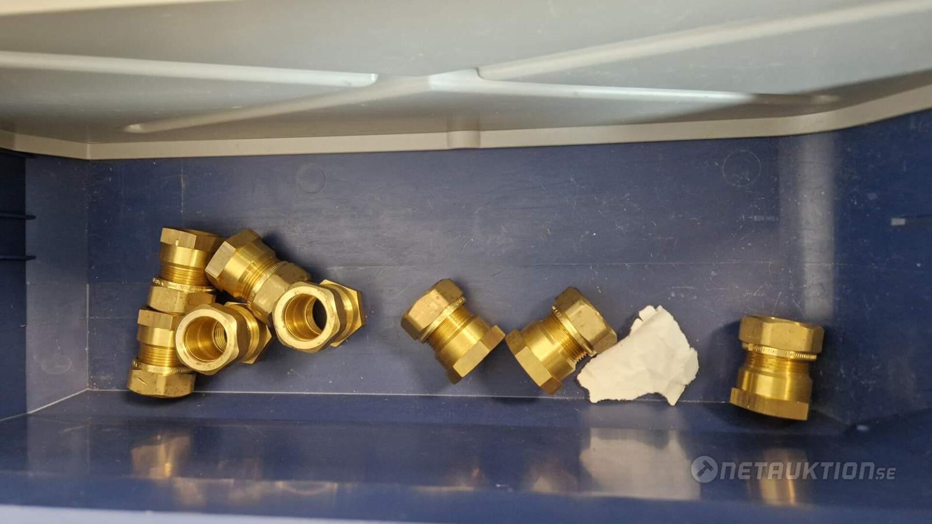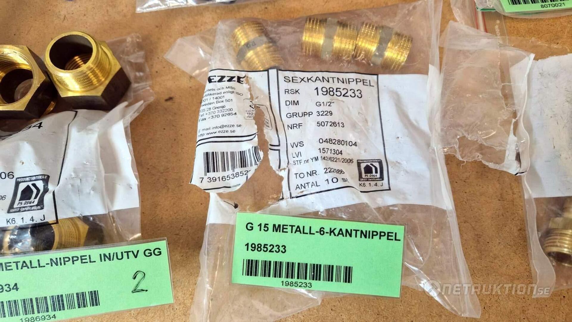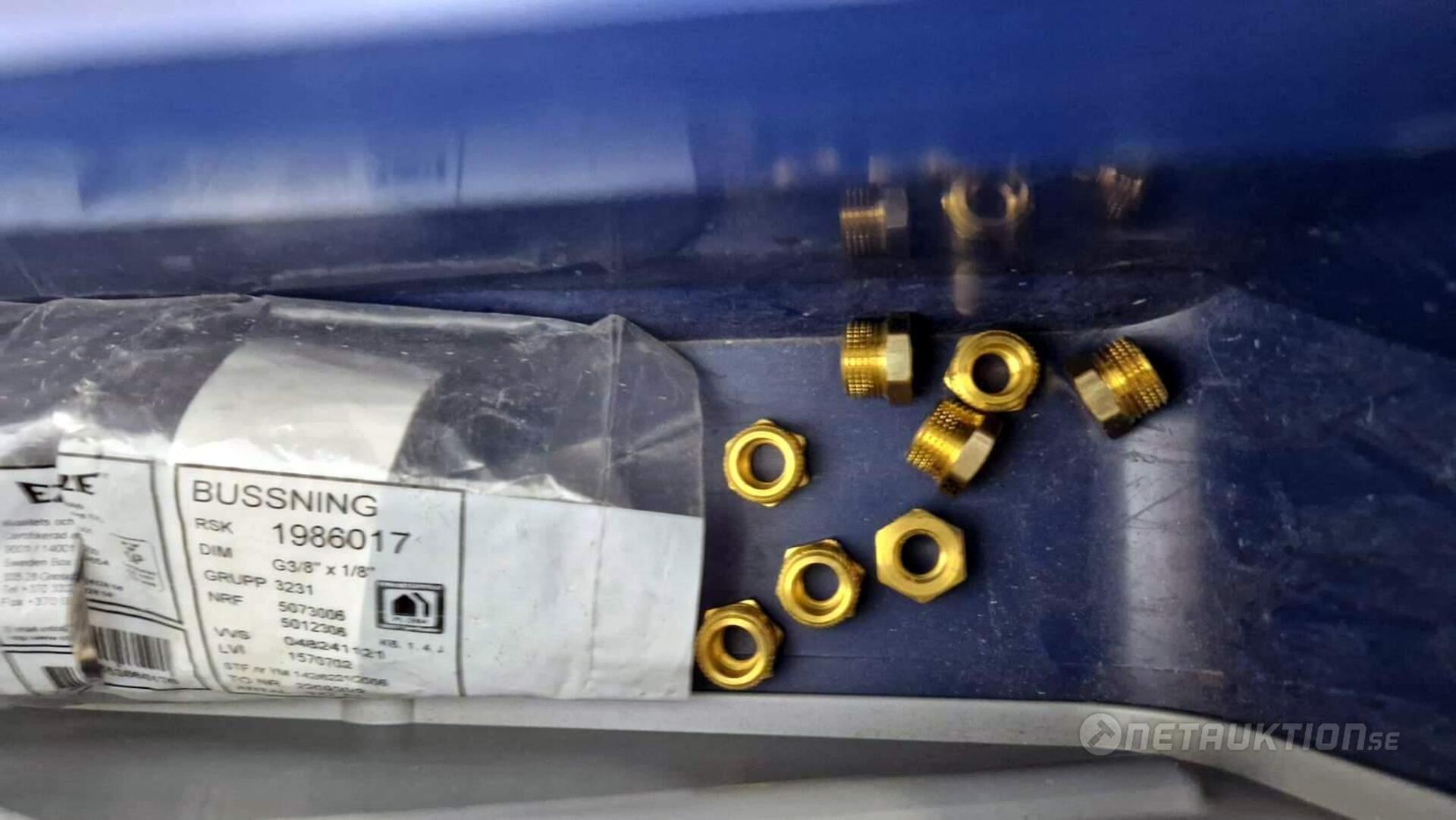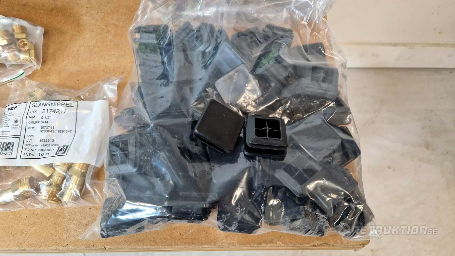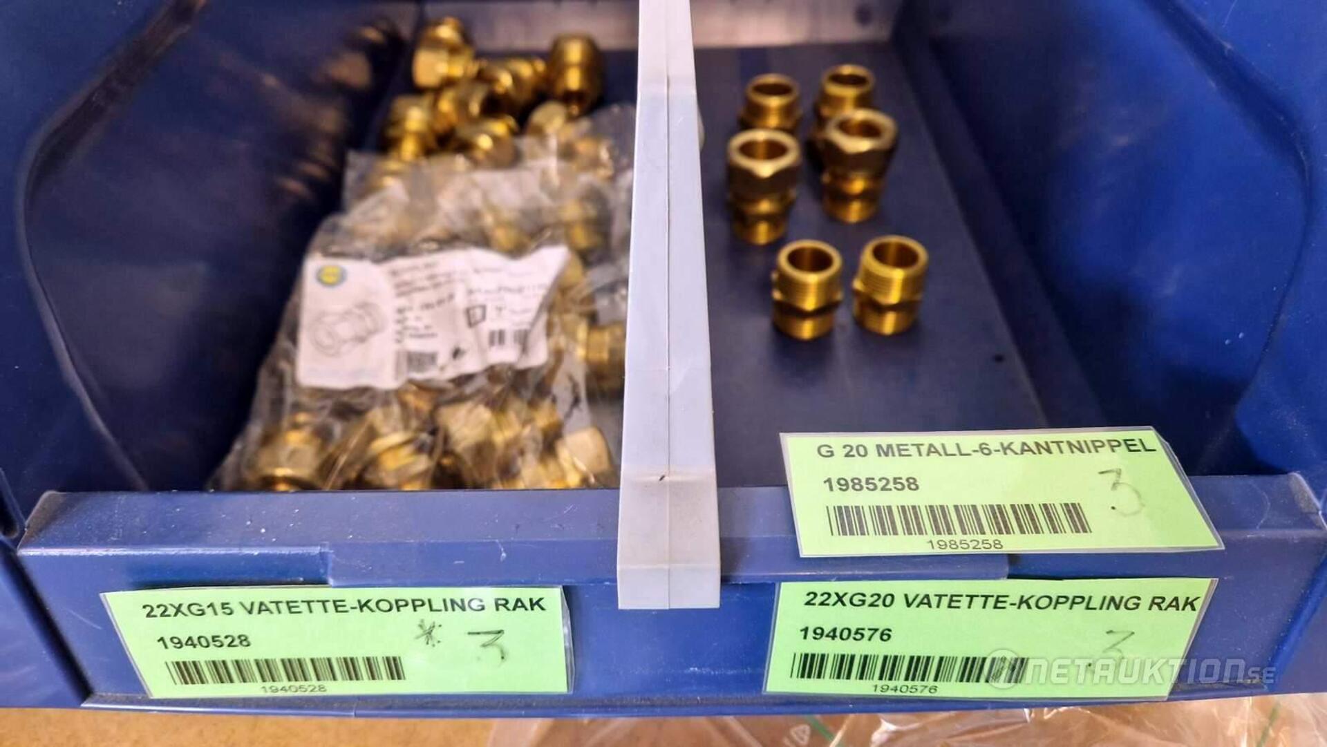 Flödesventiler, kopplingar, samlingsrör, nippel, bussningar, slangklämmor, rensproppar, mm.